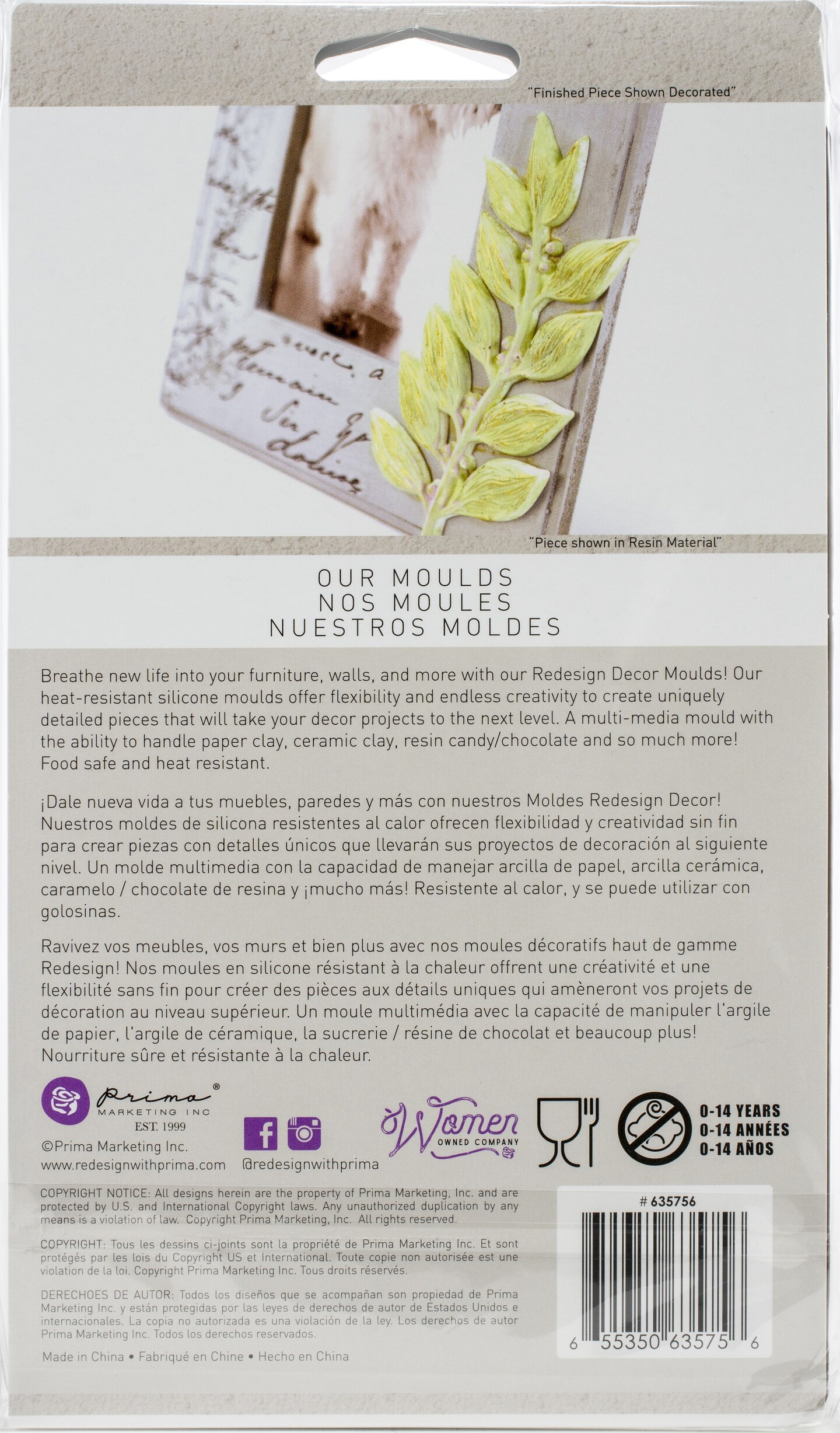 Prima Marketing Re-Design Mould 5"X8"X8mm-Leafy Blossoms