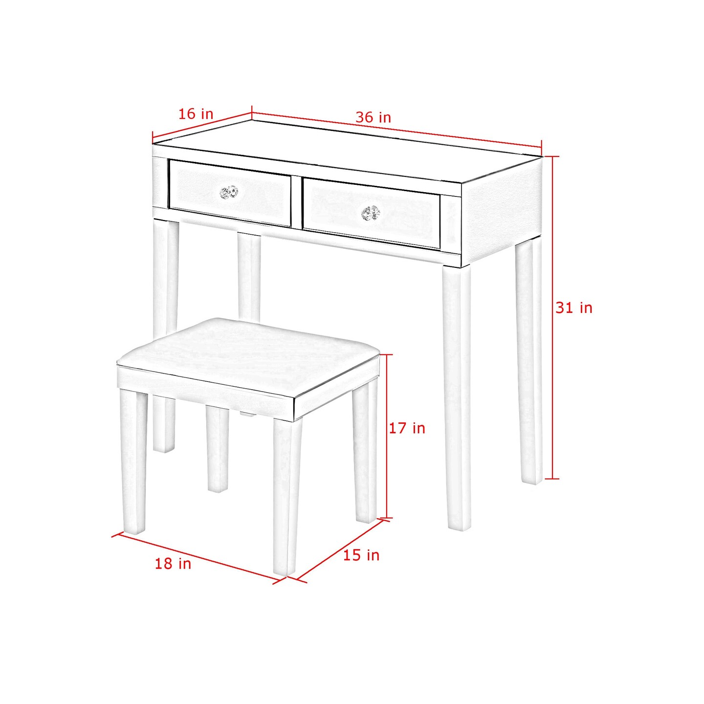 Primrose Mirrored 2-Drawer Makeup Vanity Table with Stool Set