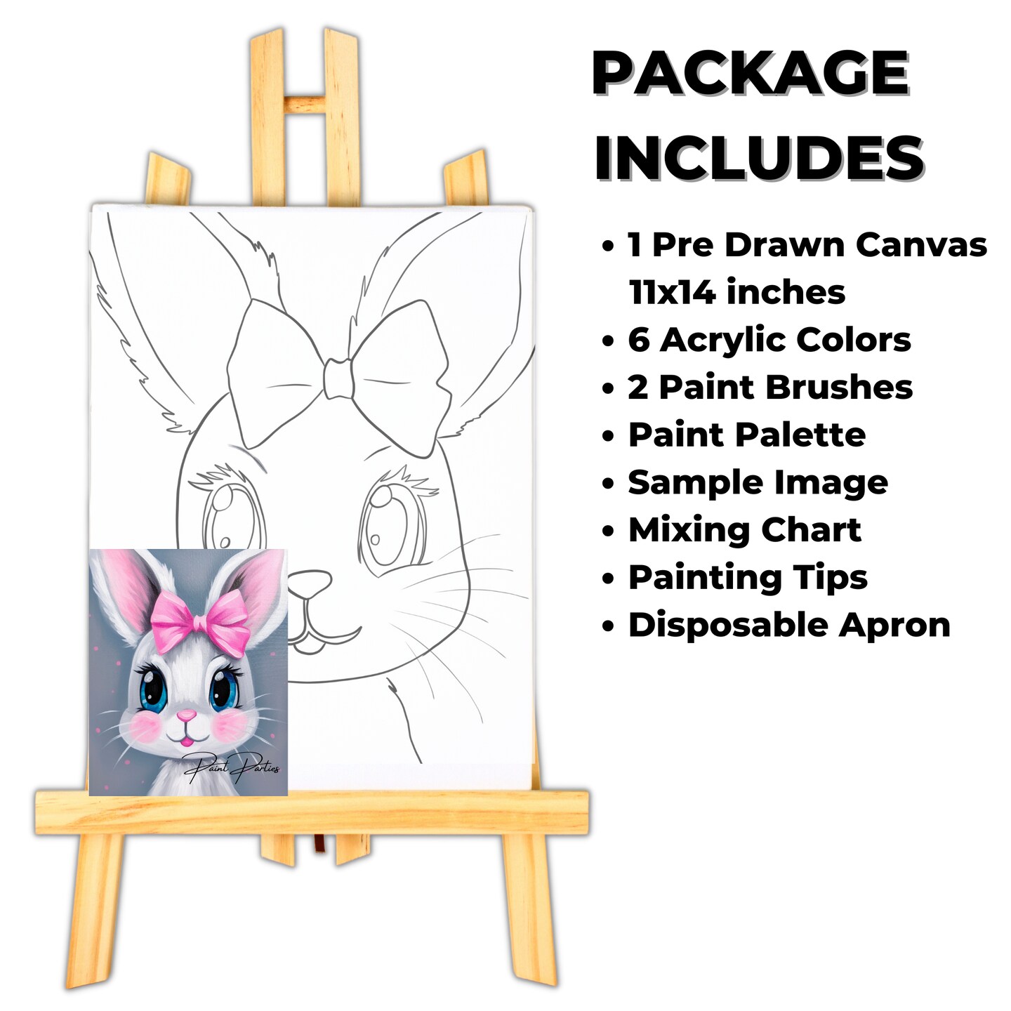 "Princess Bunny" DIY Canvas Art Kit, Adult Beginner, Acrylic Paint Size 11x14 inch