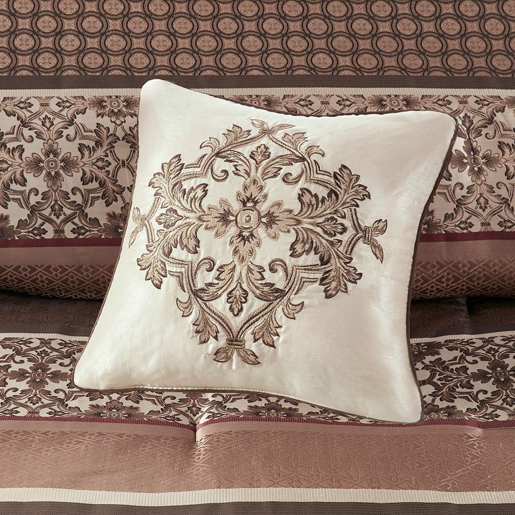 Princeton 7 Piece Comforter Set King Brown Red Ivory
