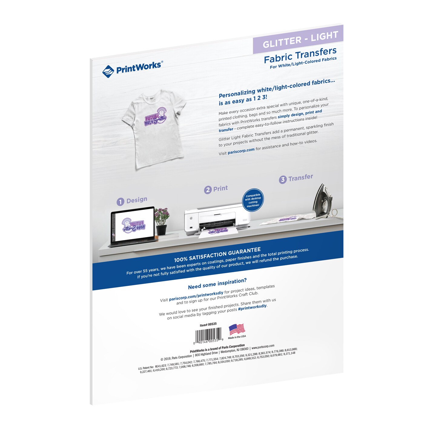 Printworks Glitter Light Fabric Transfers, for White/Light-Colored Fabrics, 4 Sheets, Inkjet, 8.5 x 11, (00535)