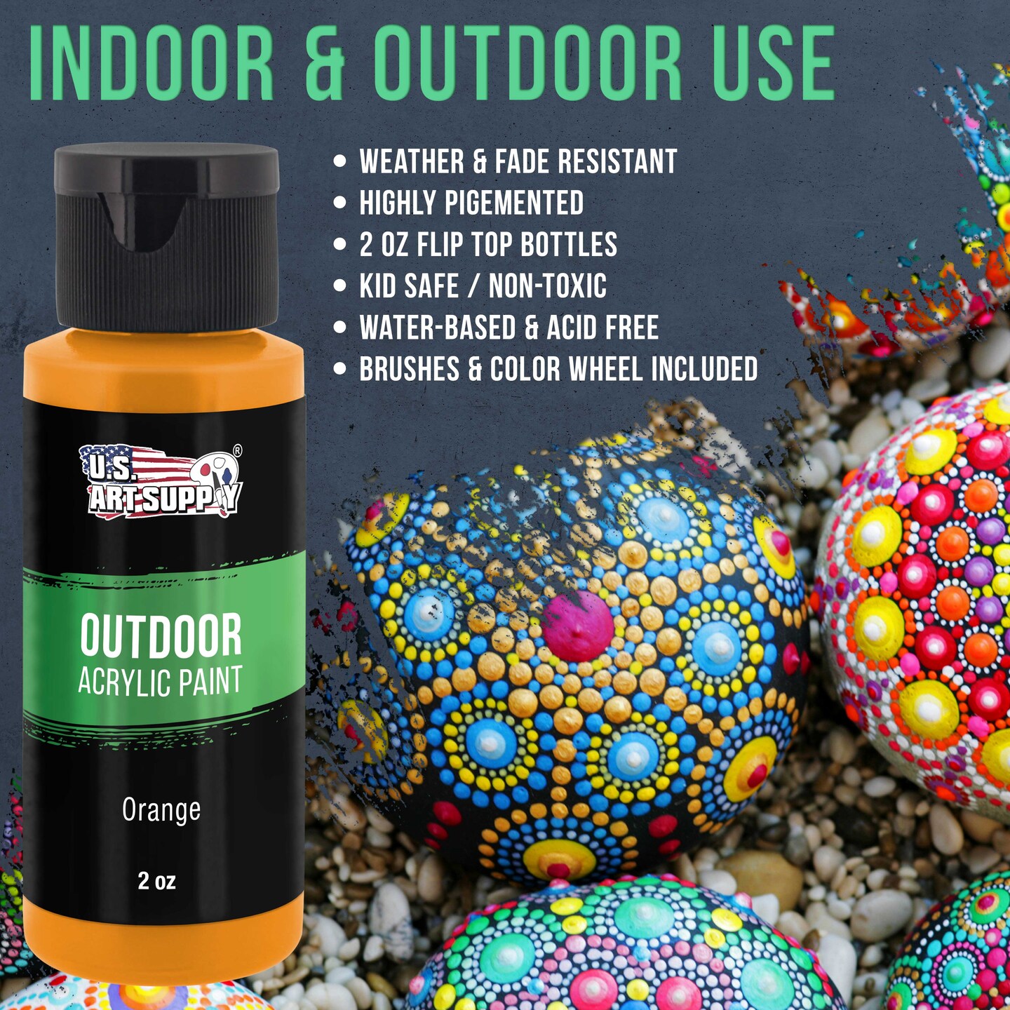 Professional 24 Color Outdoor Acrylic Paint Set, 2oz Bottles, with 7 Brush Kit - Vivid Colors for Painting Canvas, Rocks, Wood Crafts, Toys