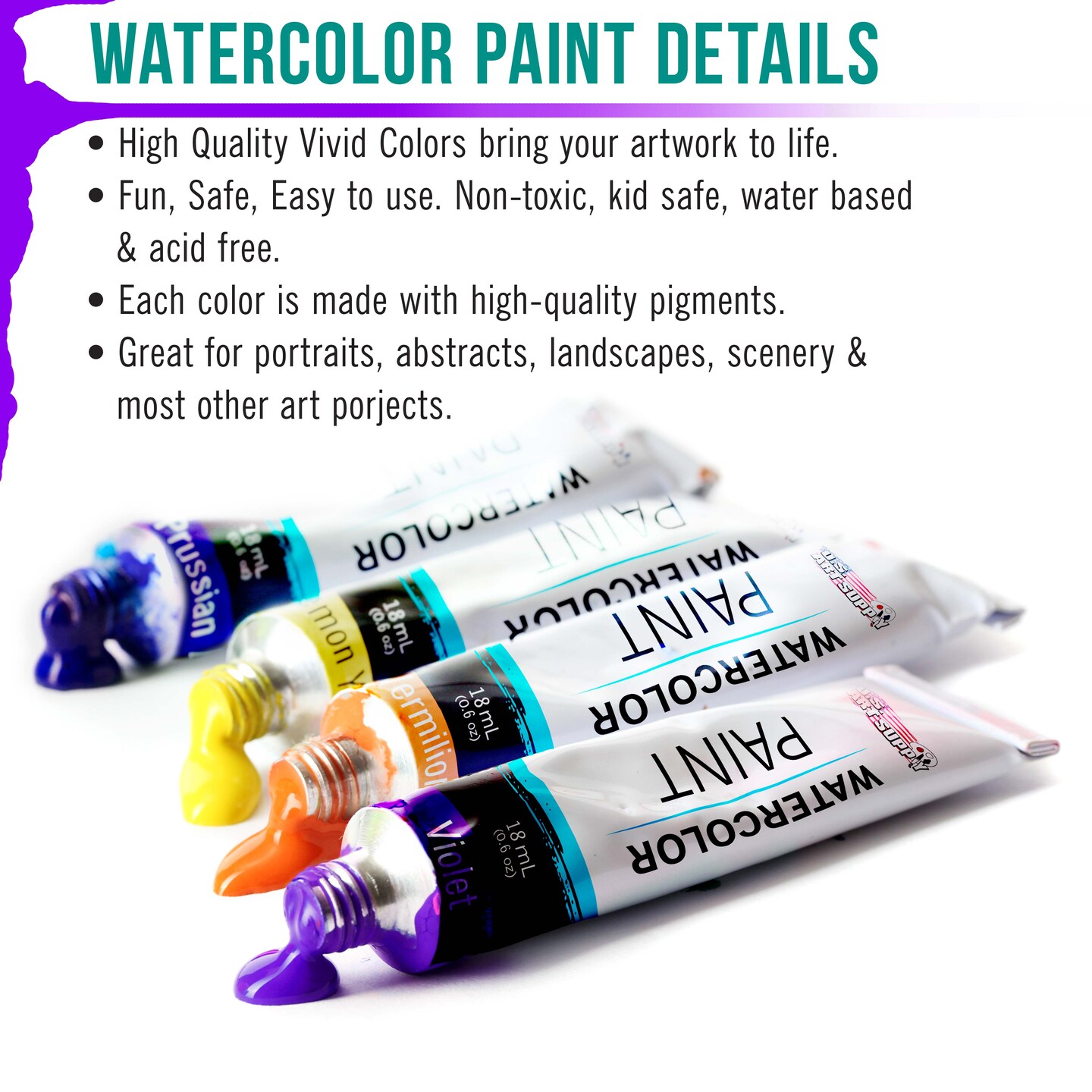 Professional 36 Color Set of Watercolor Paint in Large 18ml Tubes - Vivid Colors Kit for Artists, Students, Beginners - Canvas Portrait Paintings