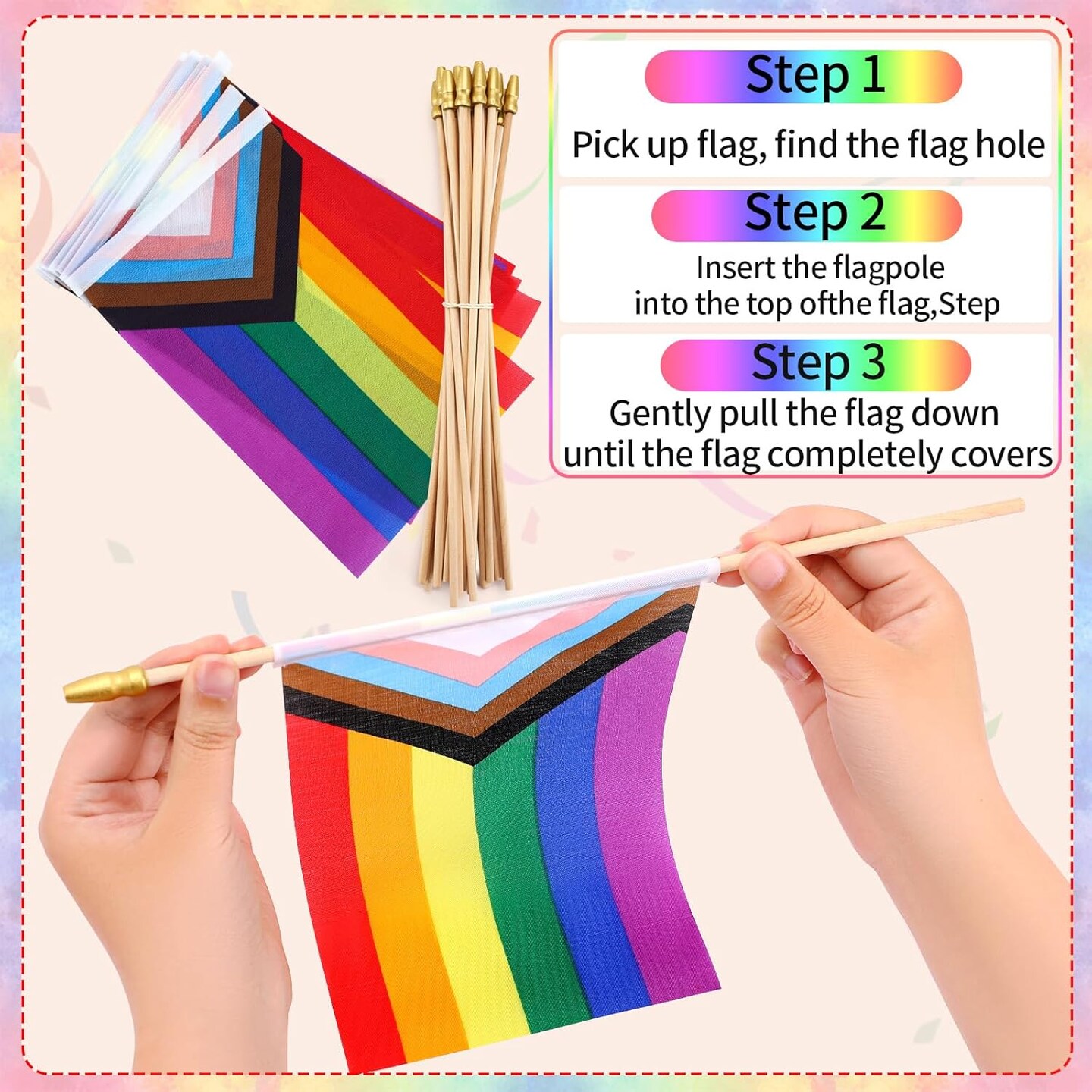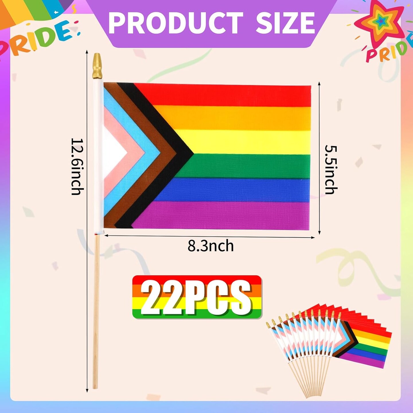 Progress Rainbow Pride Mini Flag, 22 Pack Small Mini Hand Held LGBT Flags American Rainbow Flag for Parades,Rainbow Festival Progress Party Decorations Supplies(5x8inch)