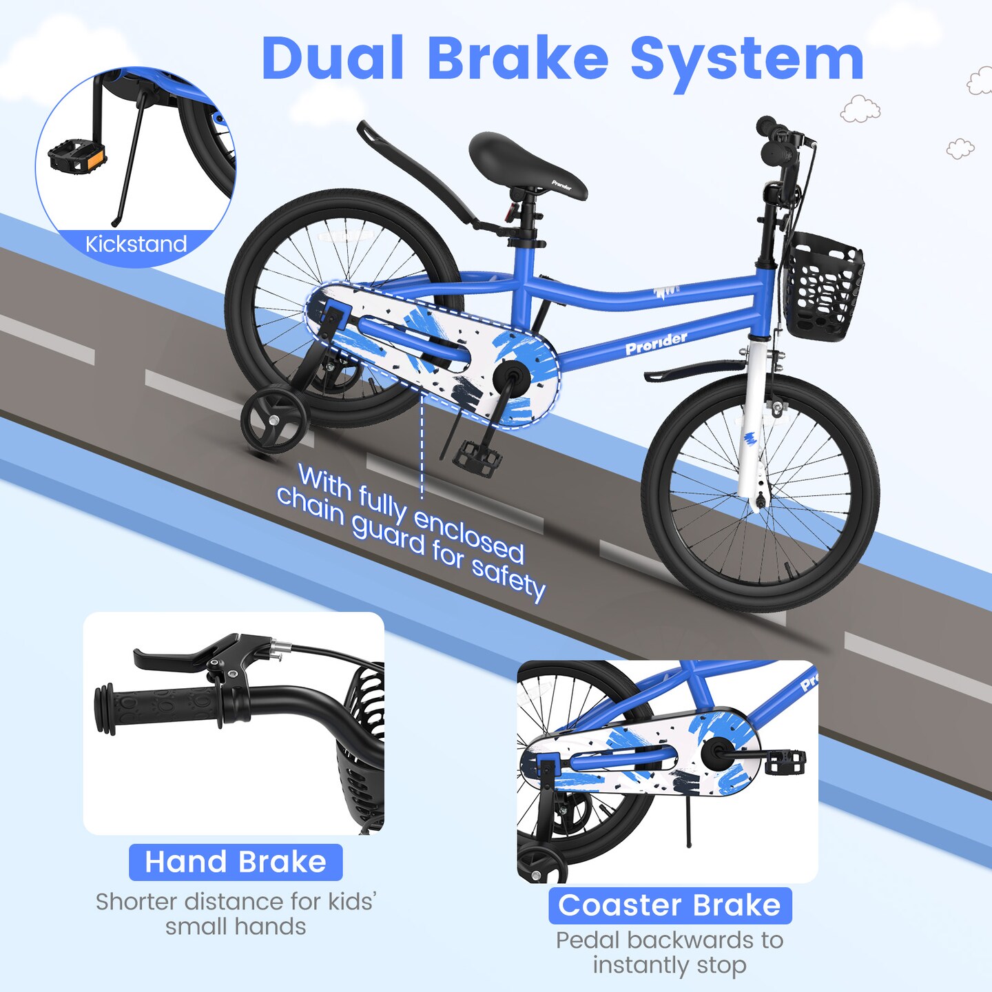 Prorider 18'' Kid's Bike with Removable Training Wheels & Basket for 4-8 Years Old White/Blue/Red/Skyblue