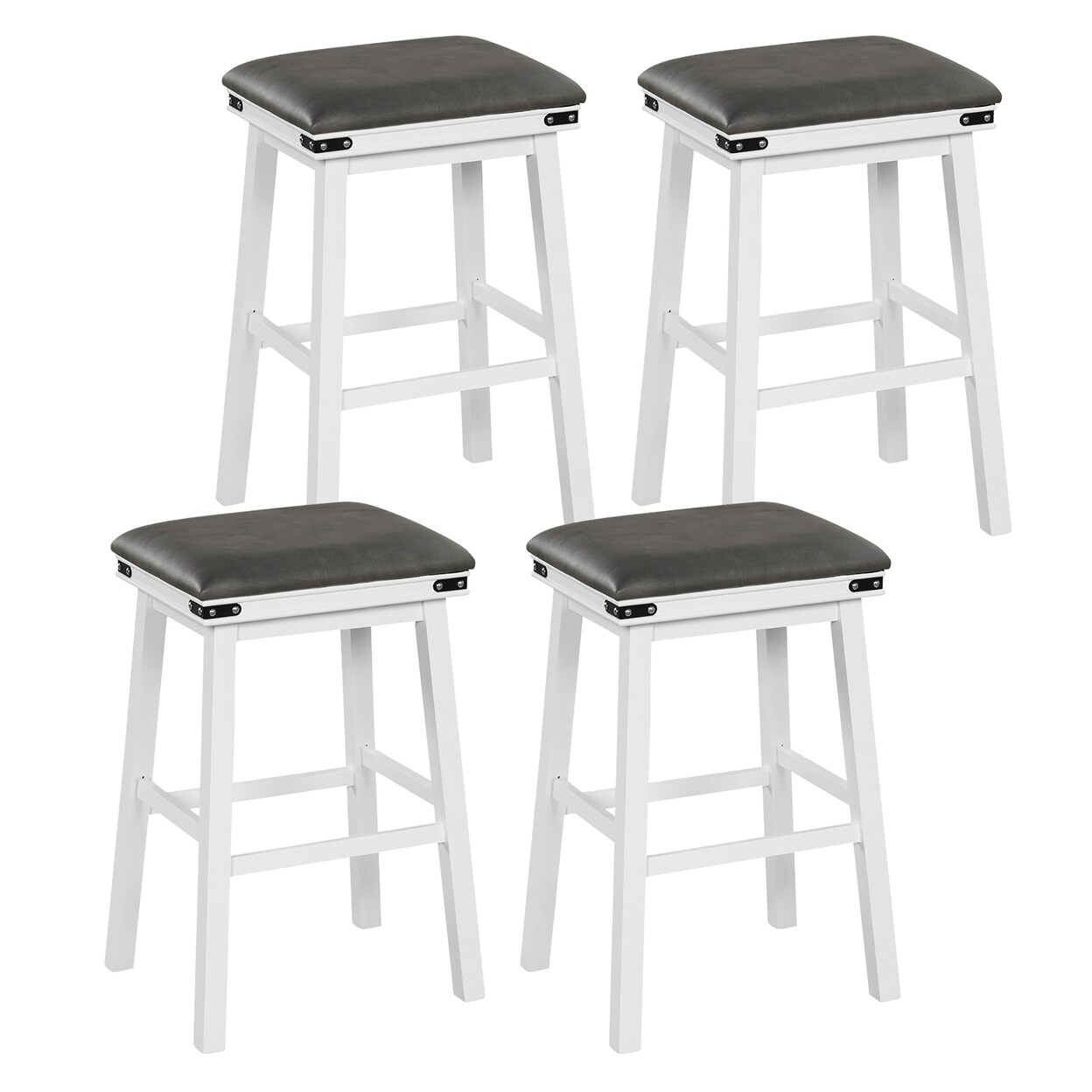 Pu Leather Bar Stools Set Of 4 30 Counter Height Dining Stools W/ Upholstered Seat