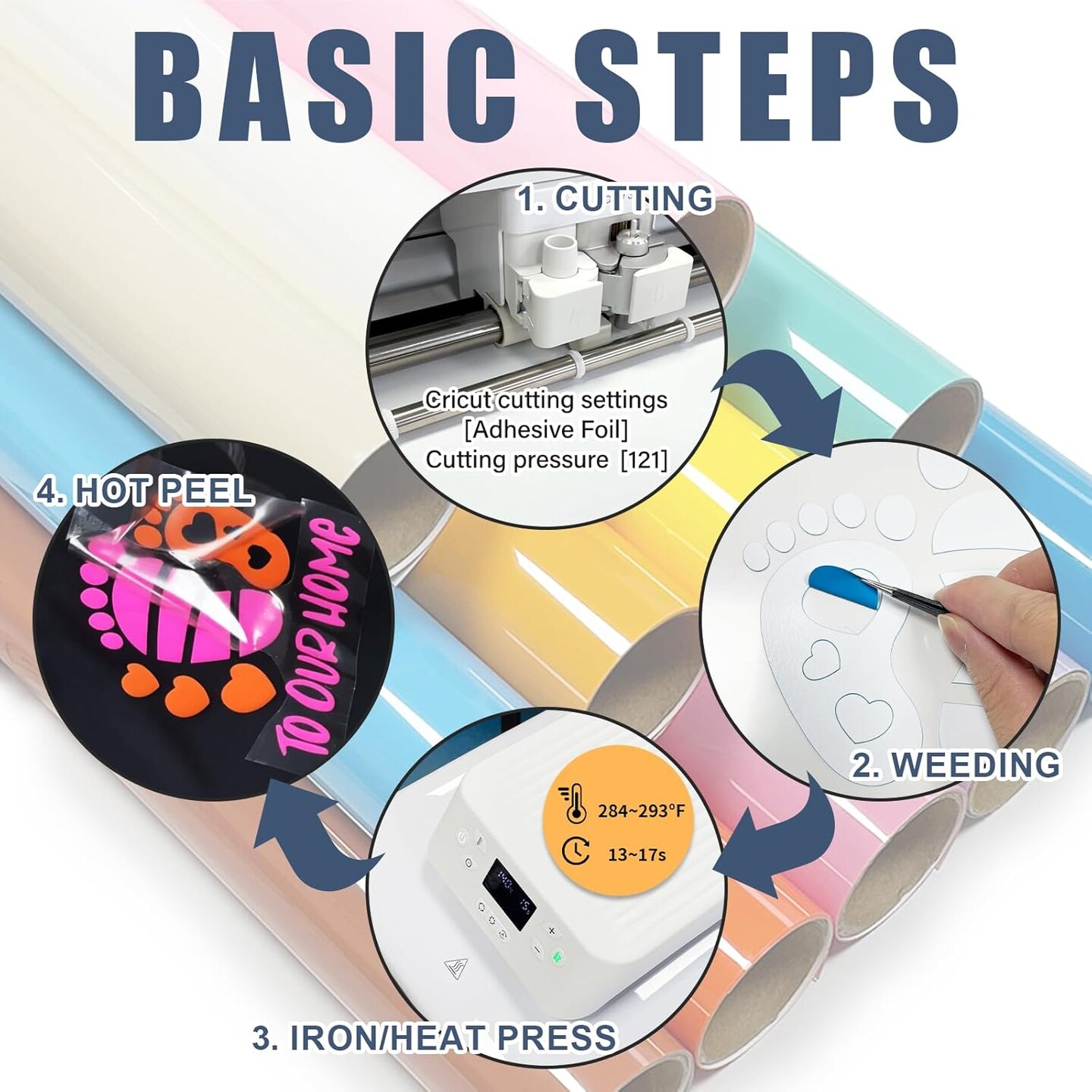 Puff Vinyl Heat Transfer, 12Pcs 12”X10” 3D Puff Heat Transfer Vinyl Sheets