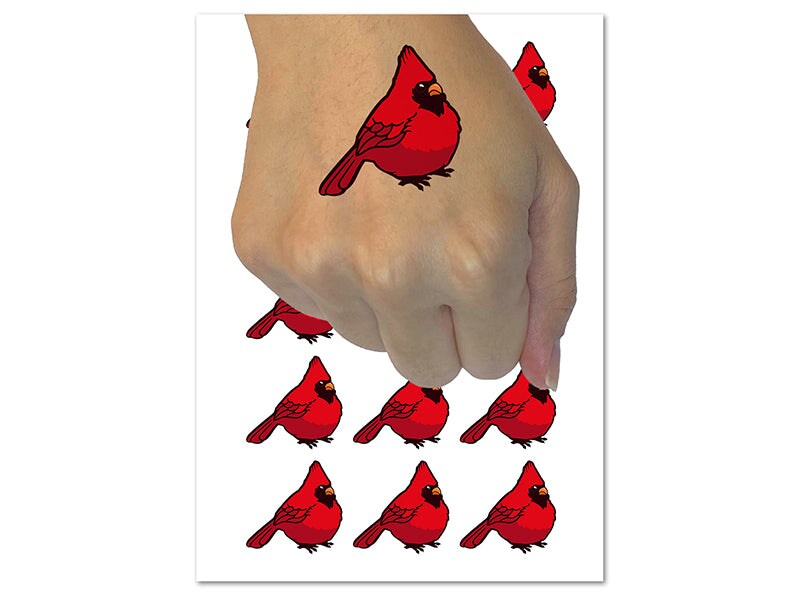 Puffy Cardinal Bird Temporary Tattoo Water Resistant Fake Body Art Set Collection (1 Sheet)