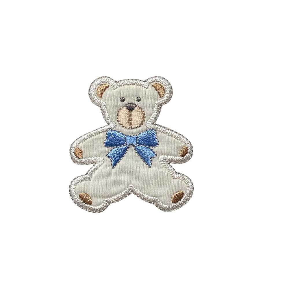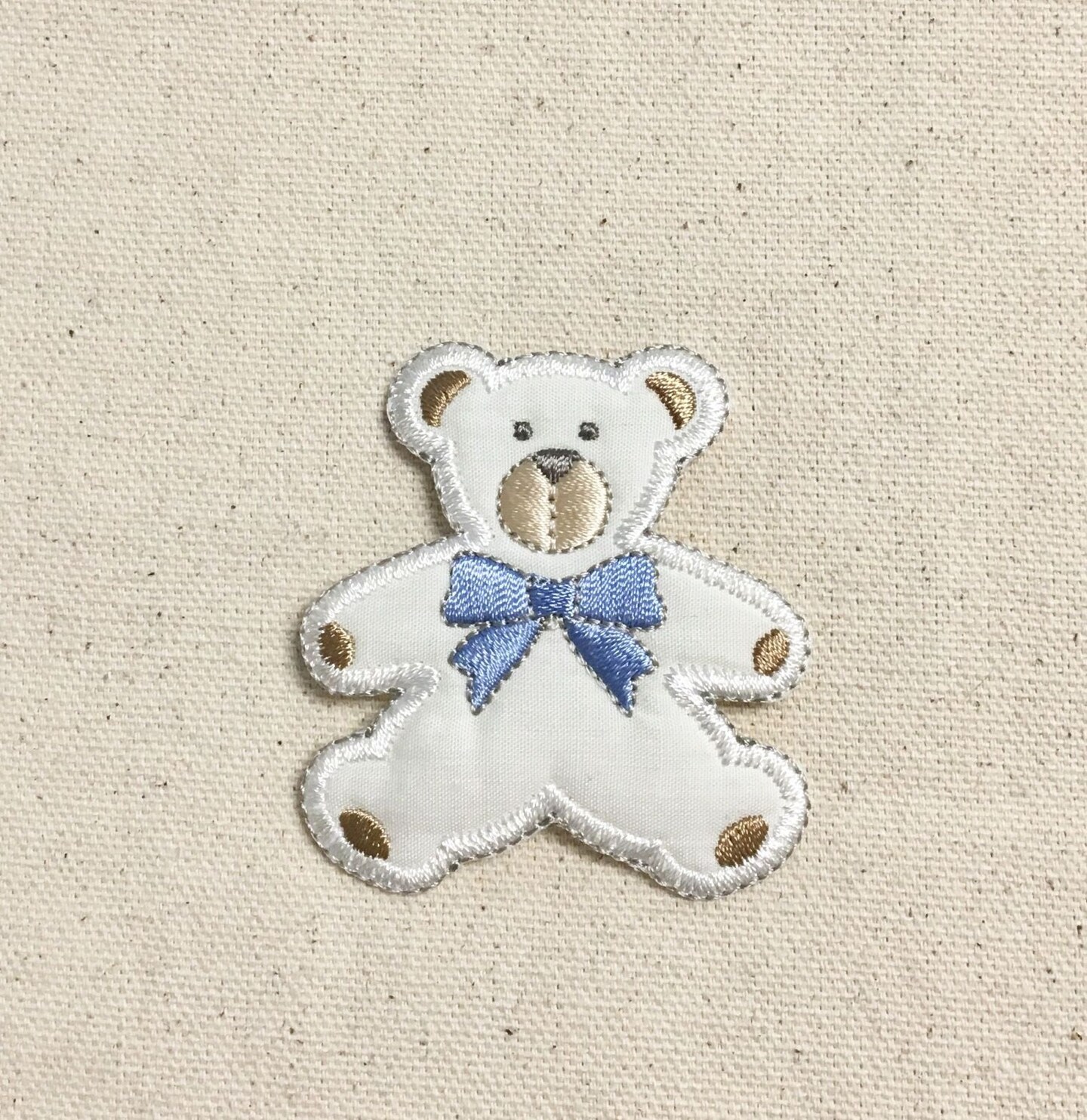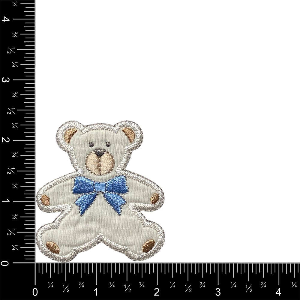 Puffy Teddy Bear - Blue Bow Embroidered, Iron on Patch