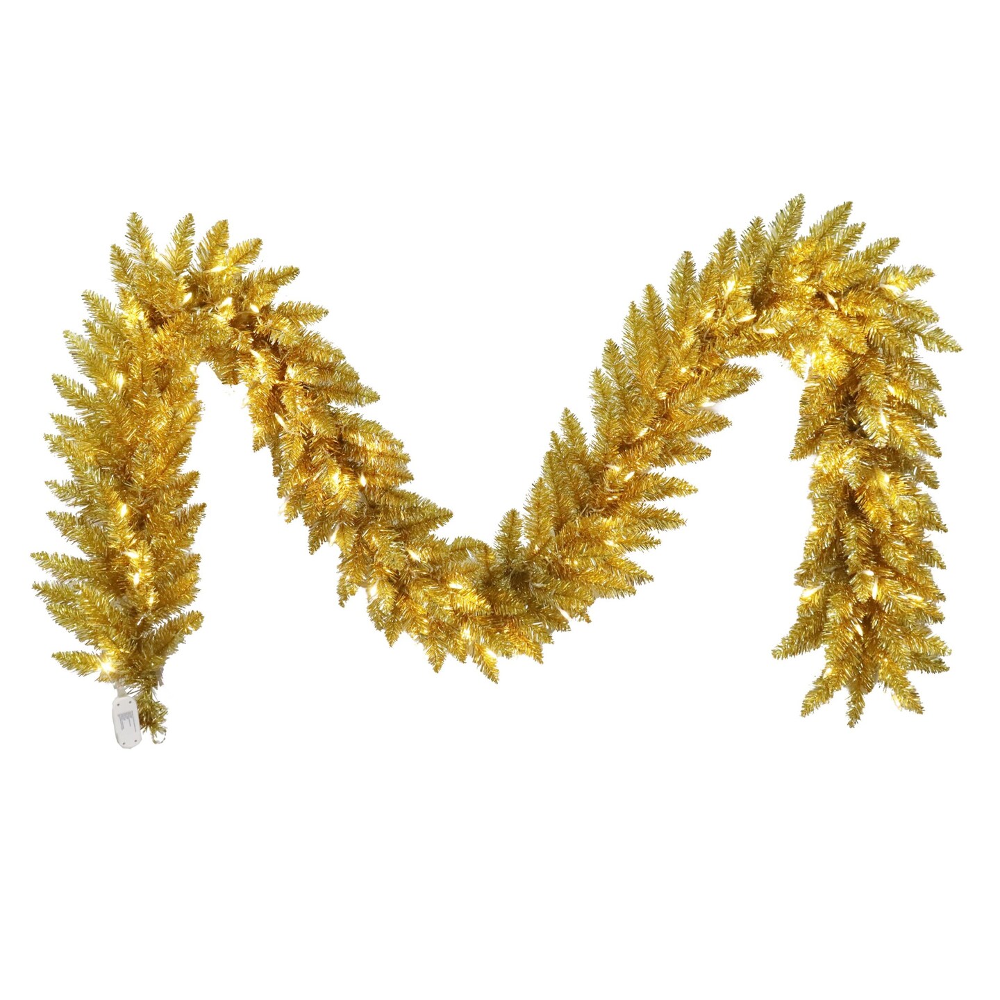 Puleo International 9ft X 12" Pre-Lit Evergreen Spruce Shiny Gold Champagne Garland With 100 Dual Color LED Lights with Functions, and Remote Control