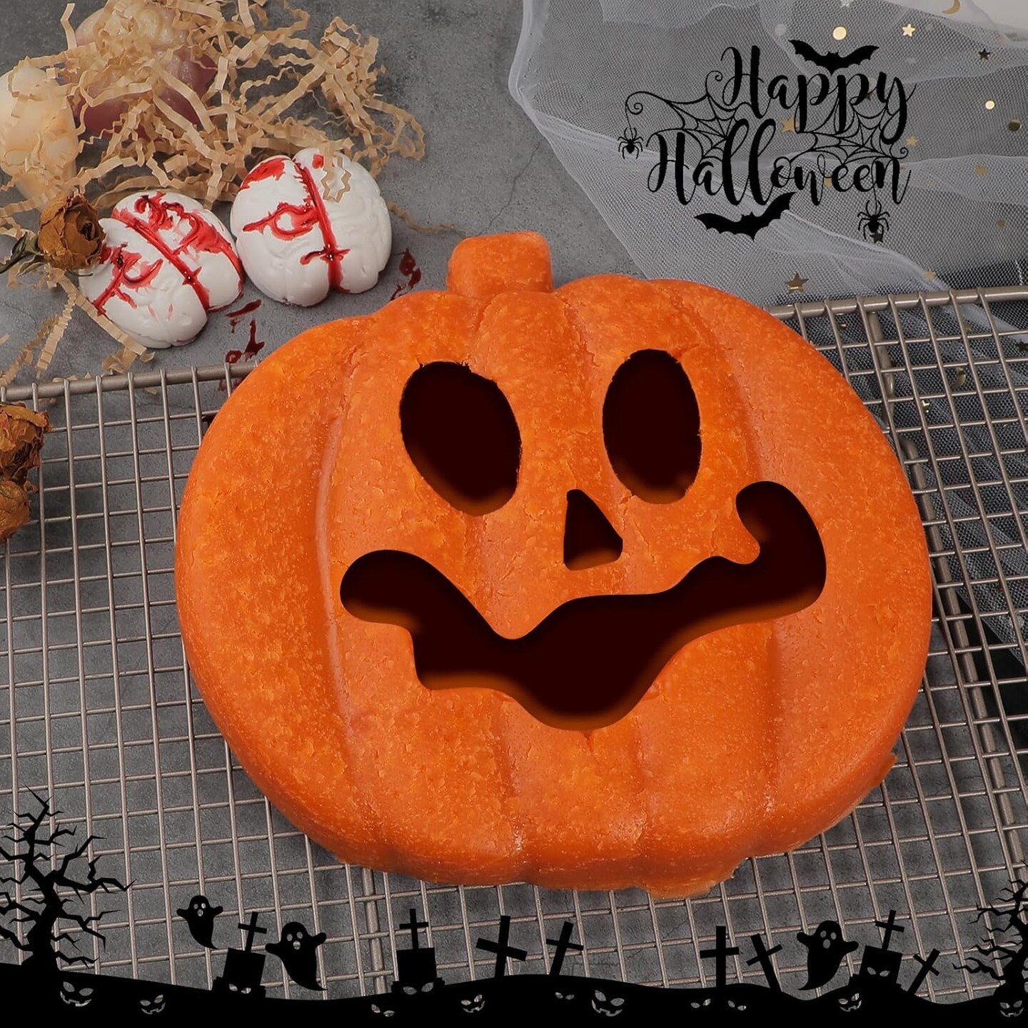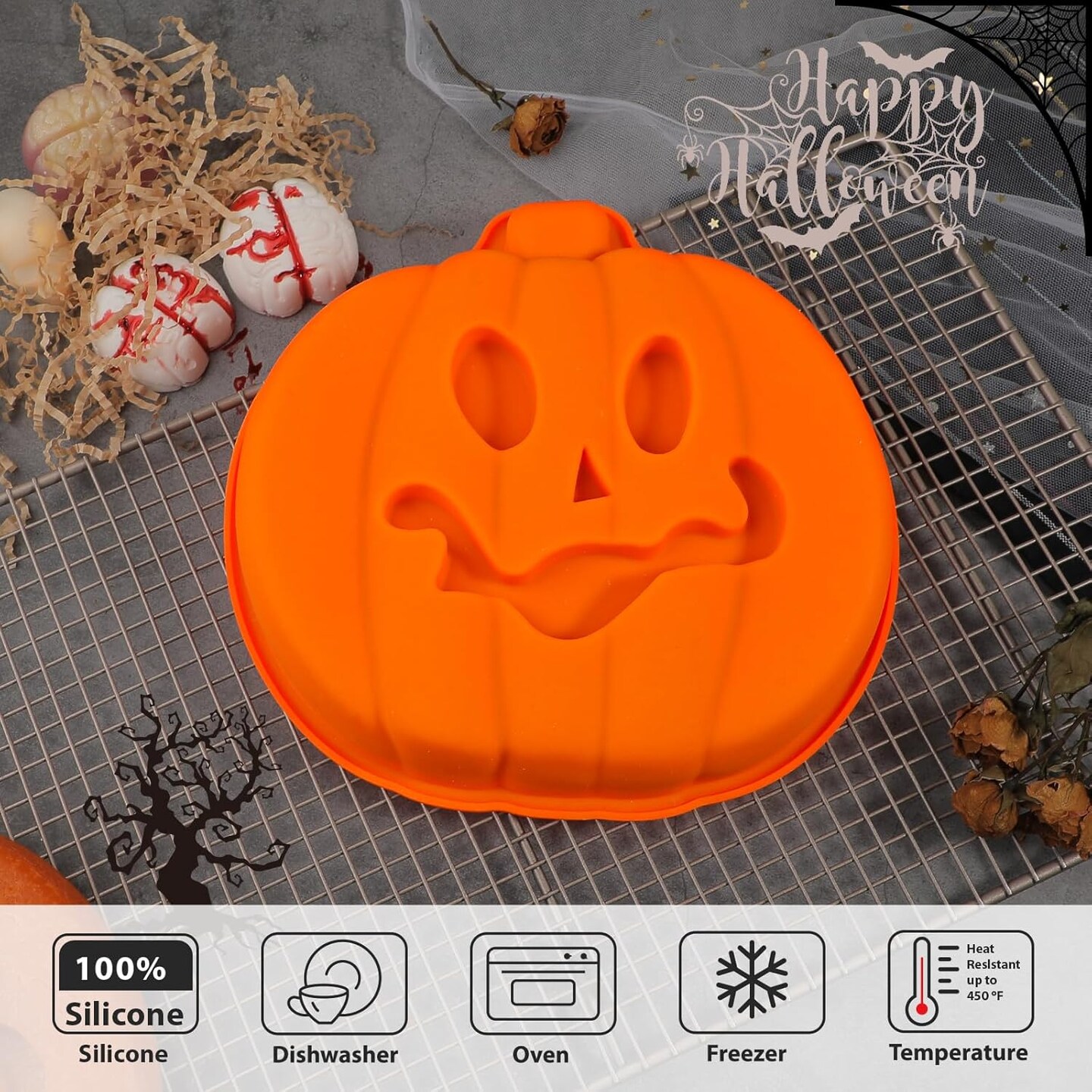 Pumpkin 8 Inch Cake Pan Silicone Jack-O-Lantern Mold(Orange)