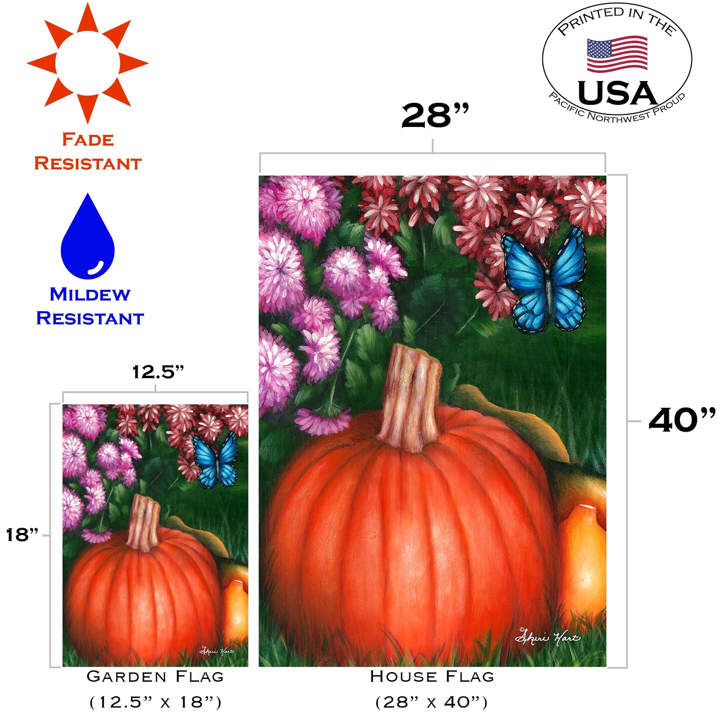 Pumpkin and Mums Decorative Fall Flag