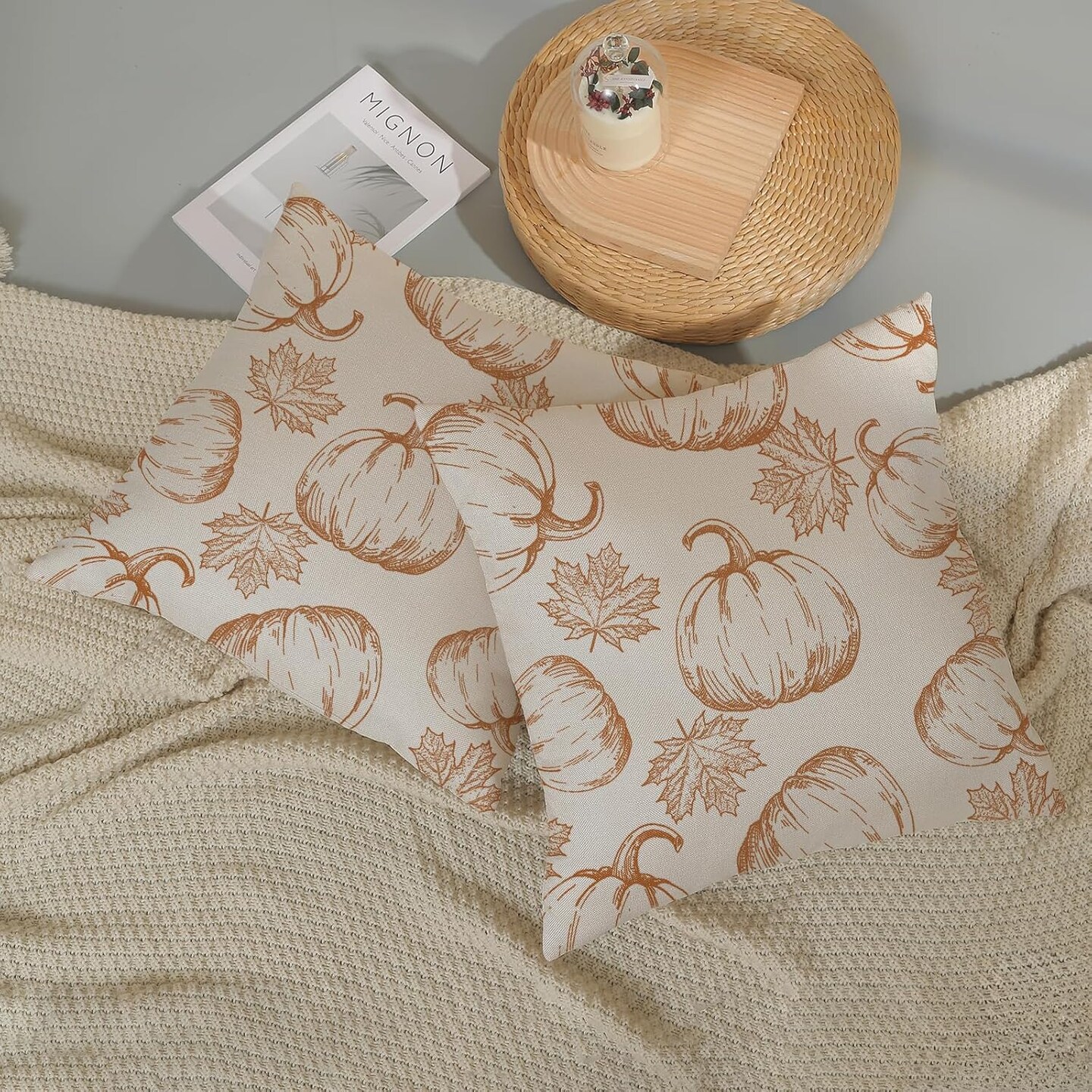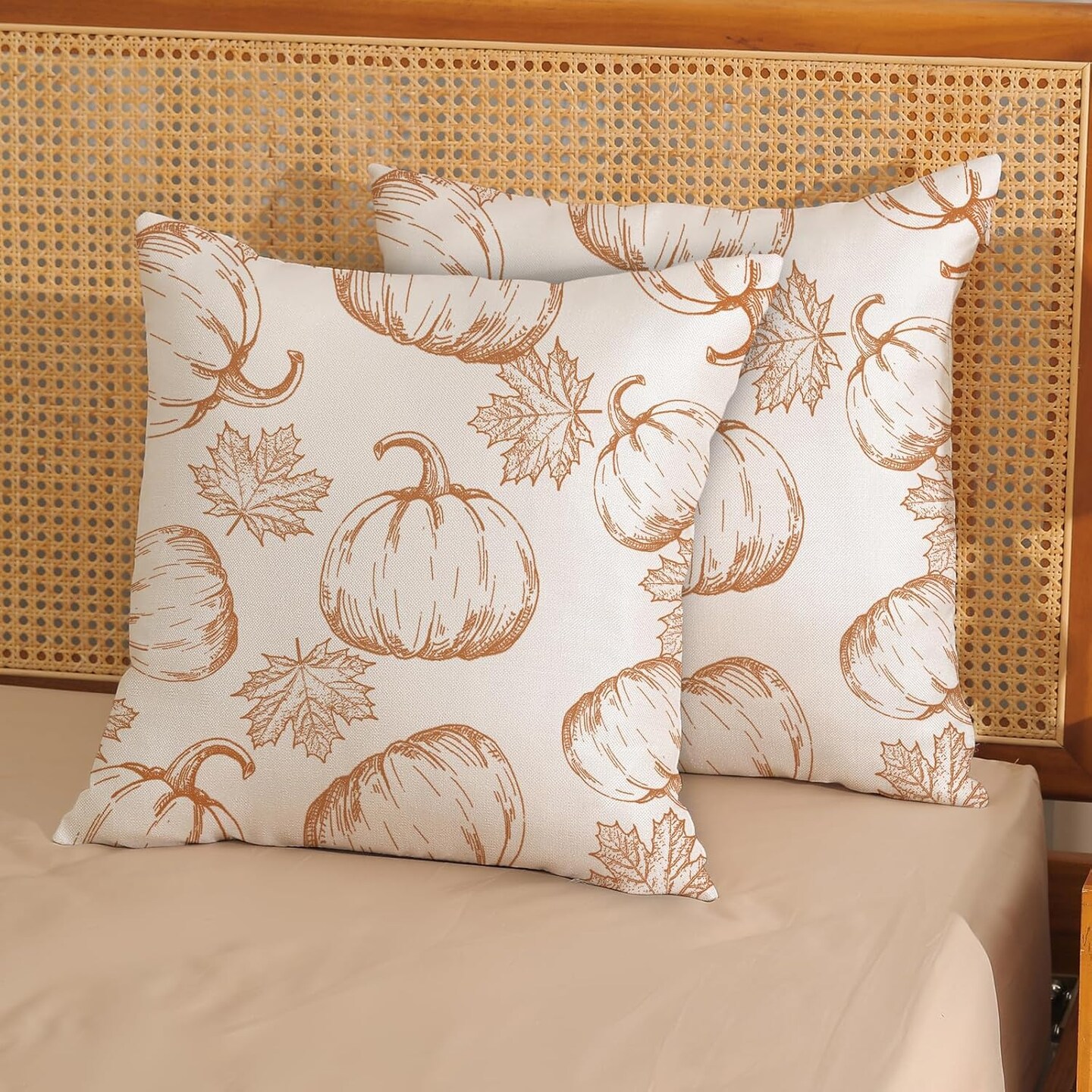 Pumpkin Decor Throw Pillows Case for Couch Maple Leaves Autumn Harvest Indoor Outdoor
