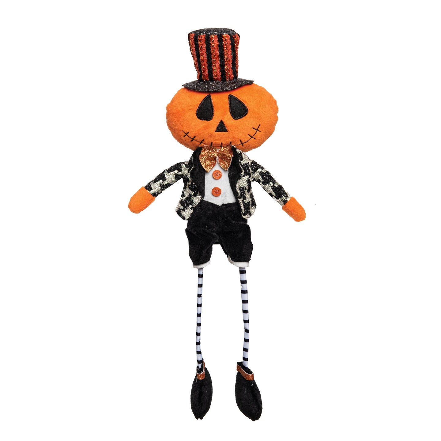 Pumpkin Jack-O-Lantern Halloween Dangle Leg Shelf Sitter