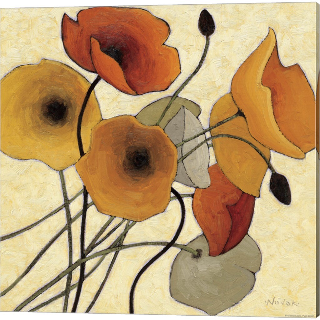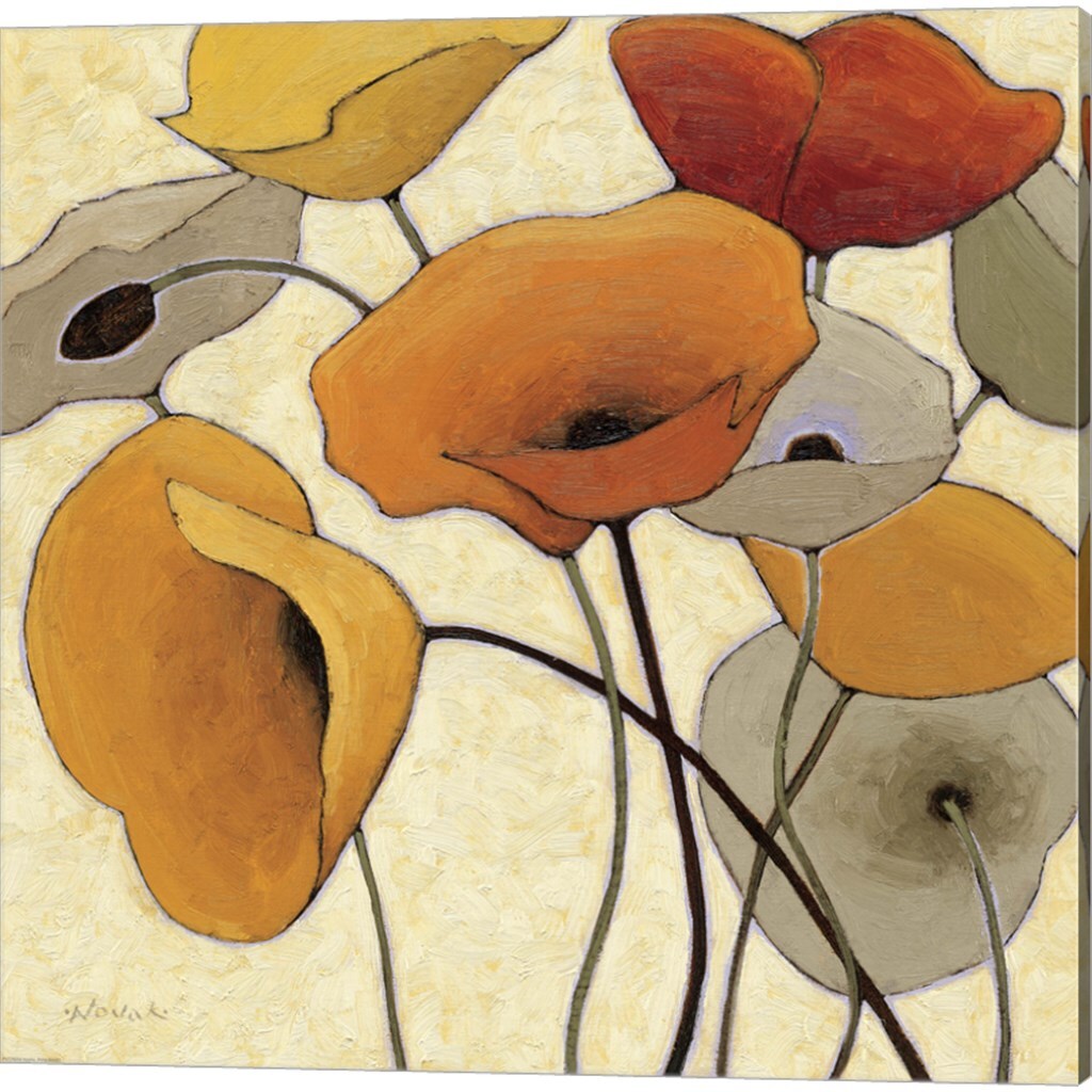 Pumpkin Poppies by Shirley Novak 14" x 14" Canvas Wall Art (Set of 2)