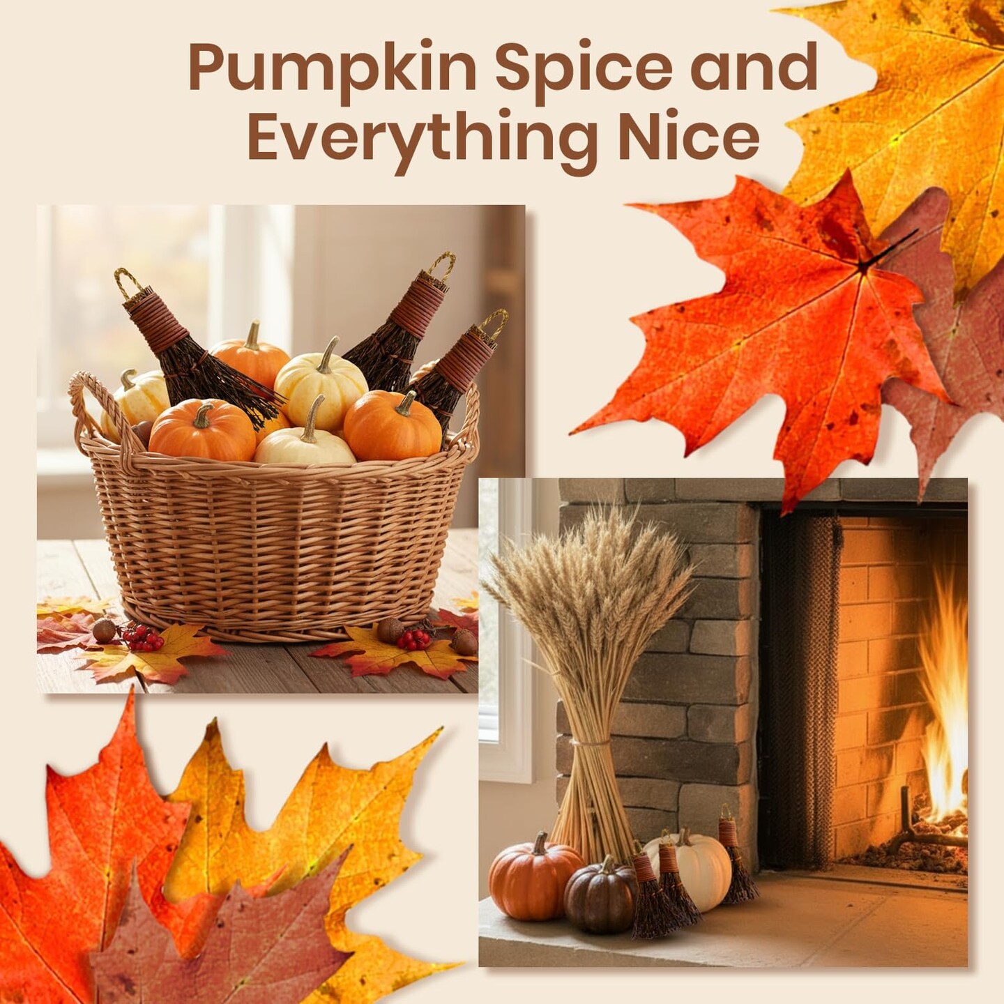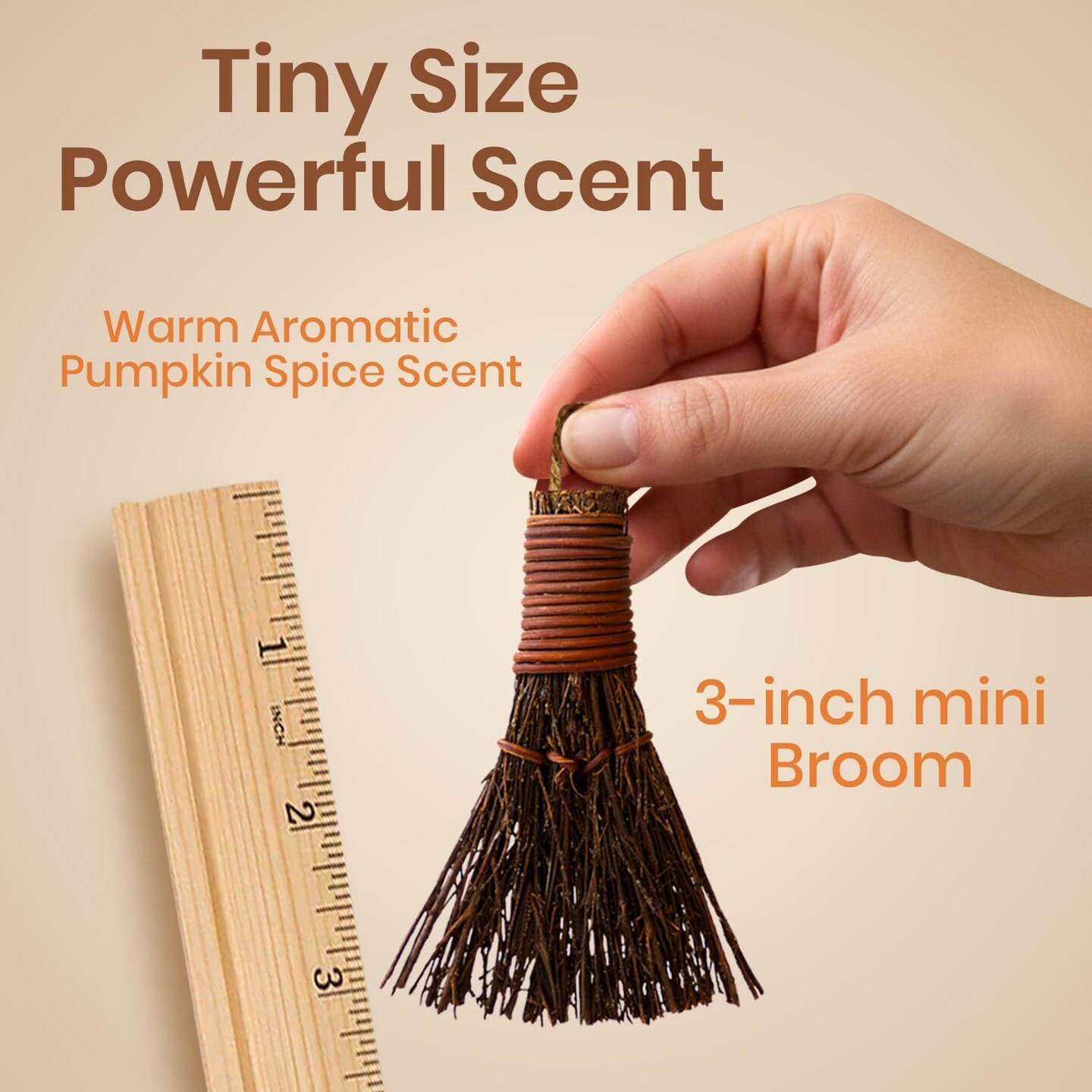 Pumpkin Spice Scented Broom 3in Mini Broomsticks - Decorative Witch Broom for Door Protection & Halloween Décor