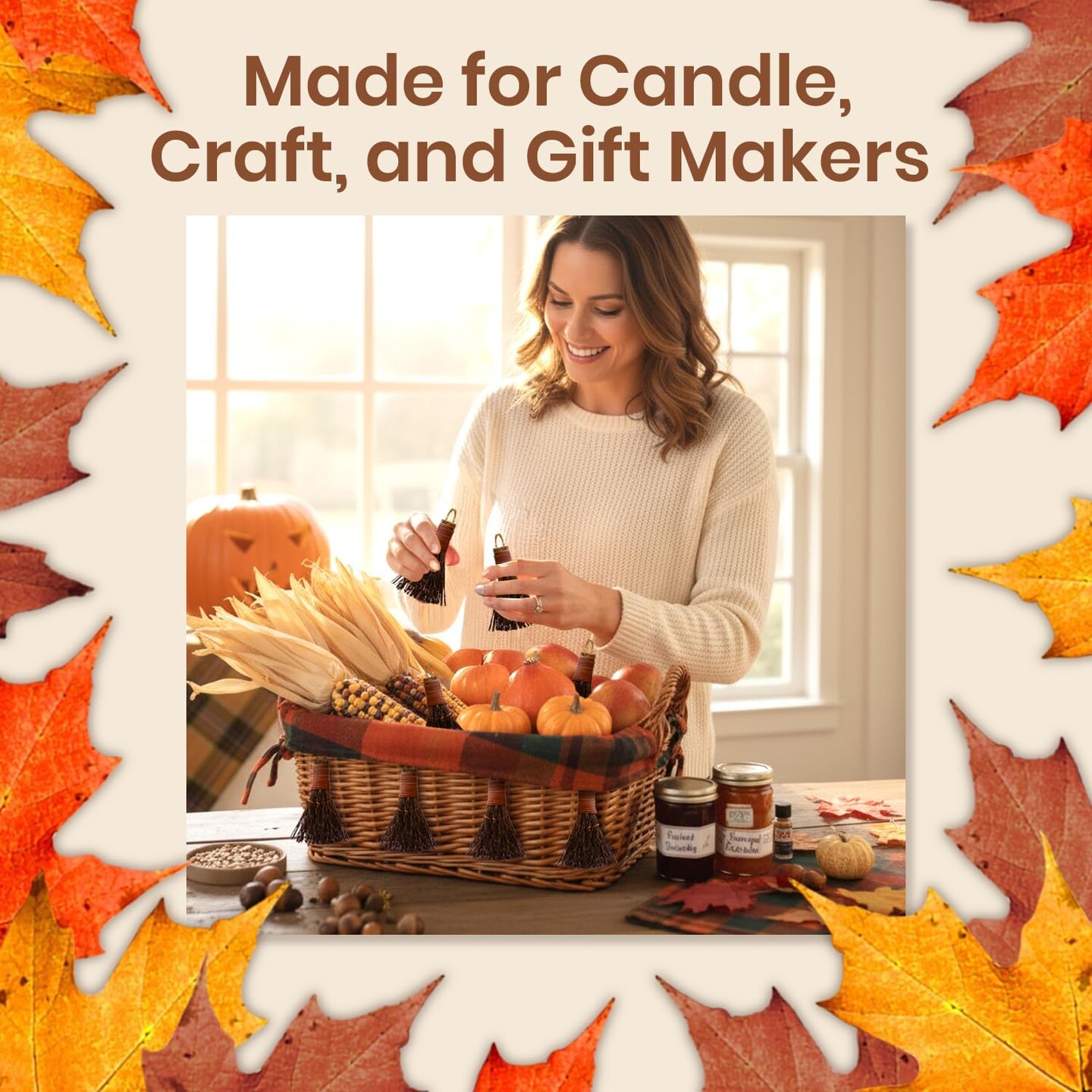 Pumpkin Spice Scented Broom 3in Mini Broomsticks - Decorative Witch Broom for Door Protection & Halloween Décor