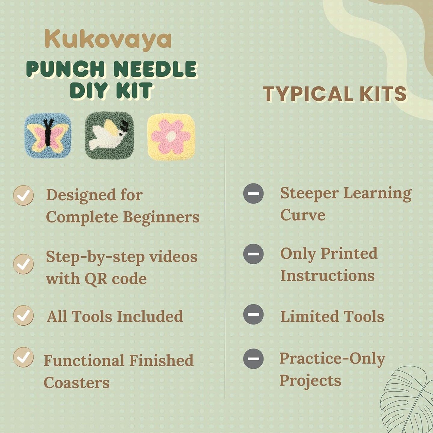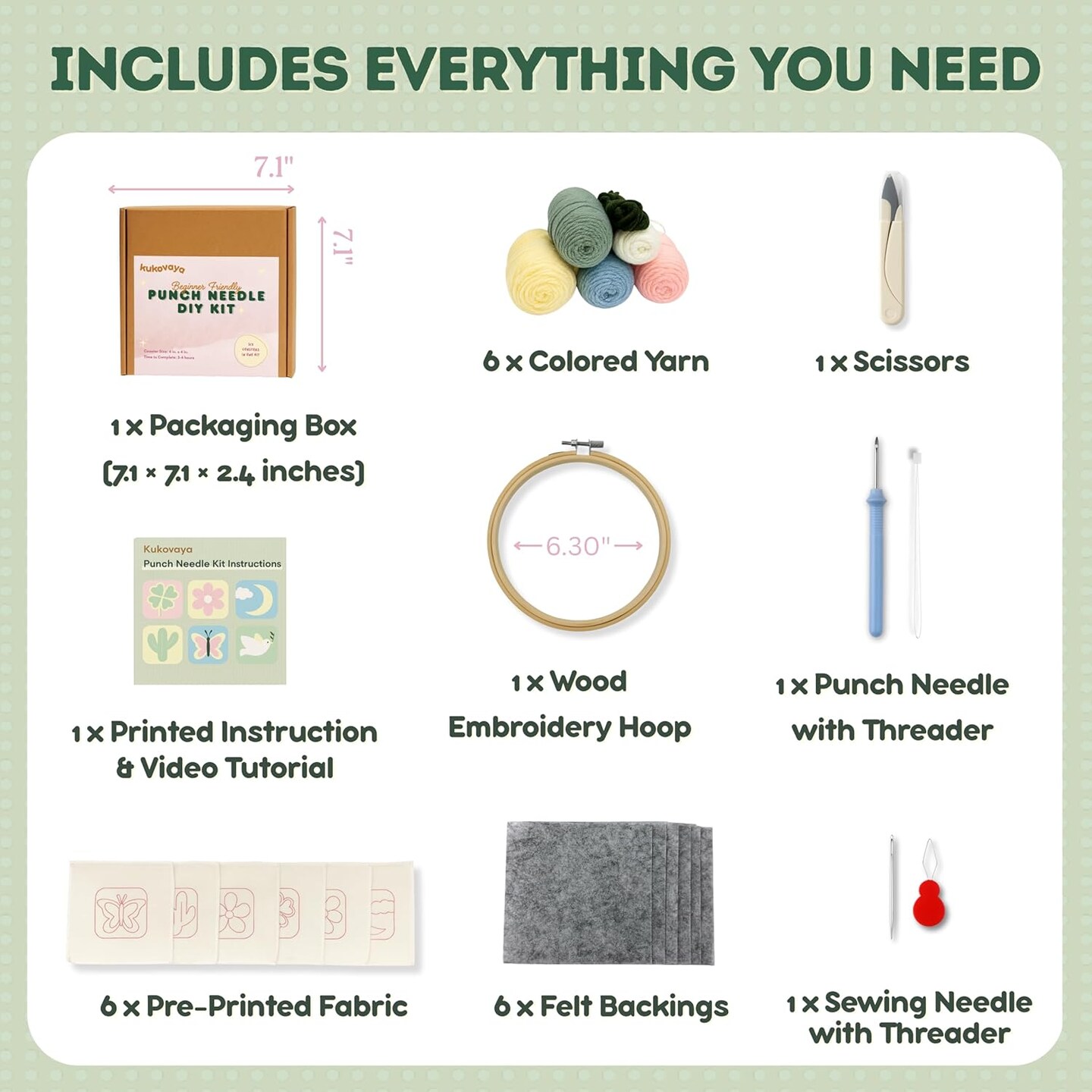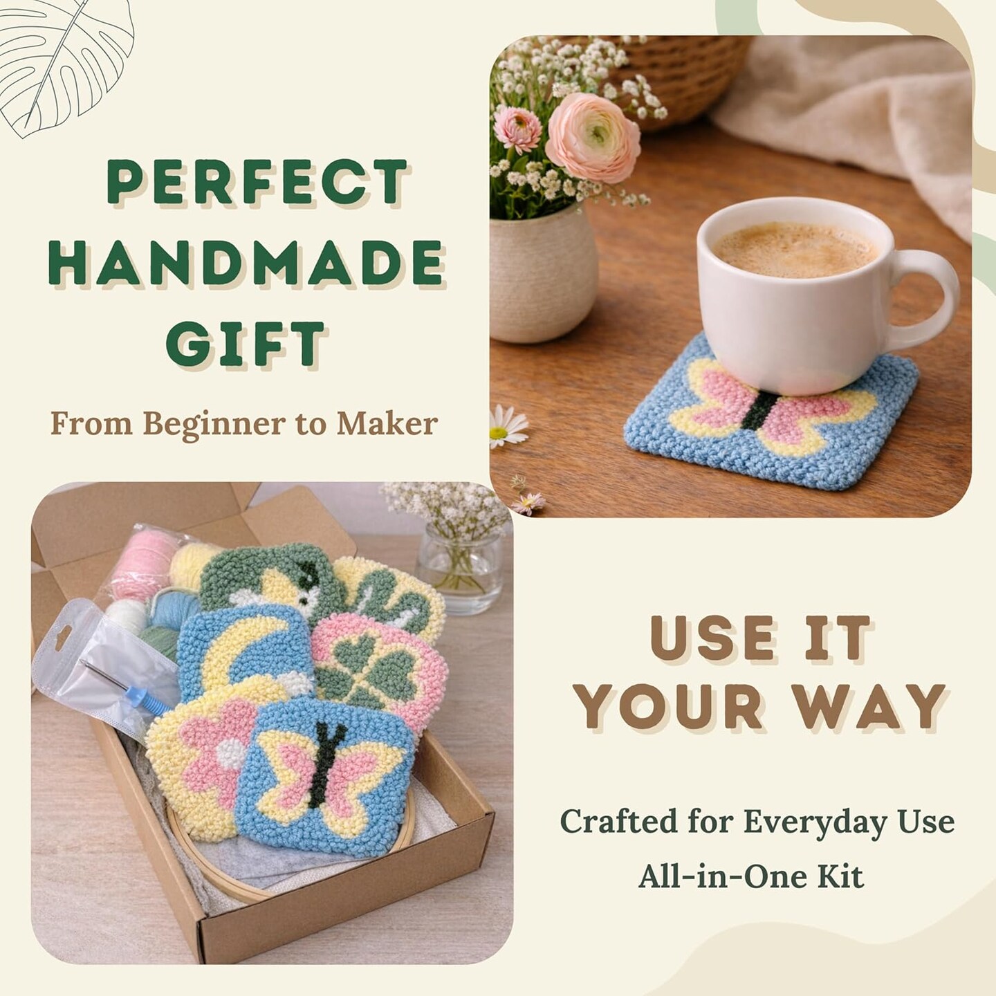 Punch Needle Kit for Beginners & Adults – DIY 6-Coaster Embroidery Set with Printed Fabric, Yarn, Needle, Hoop & Guide, Easy Craft Kit for Home Decor, Gifts & Relaxation