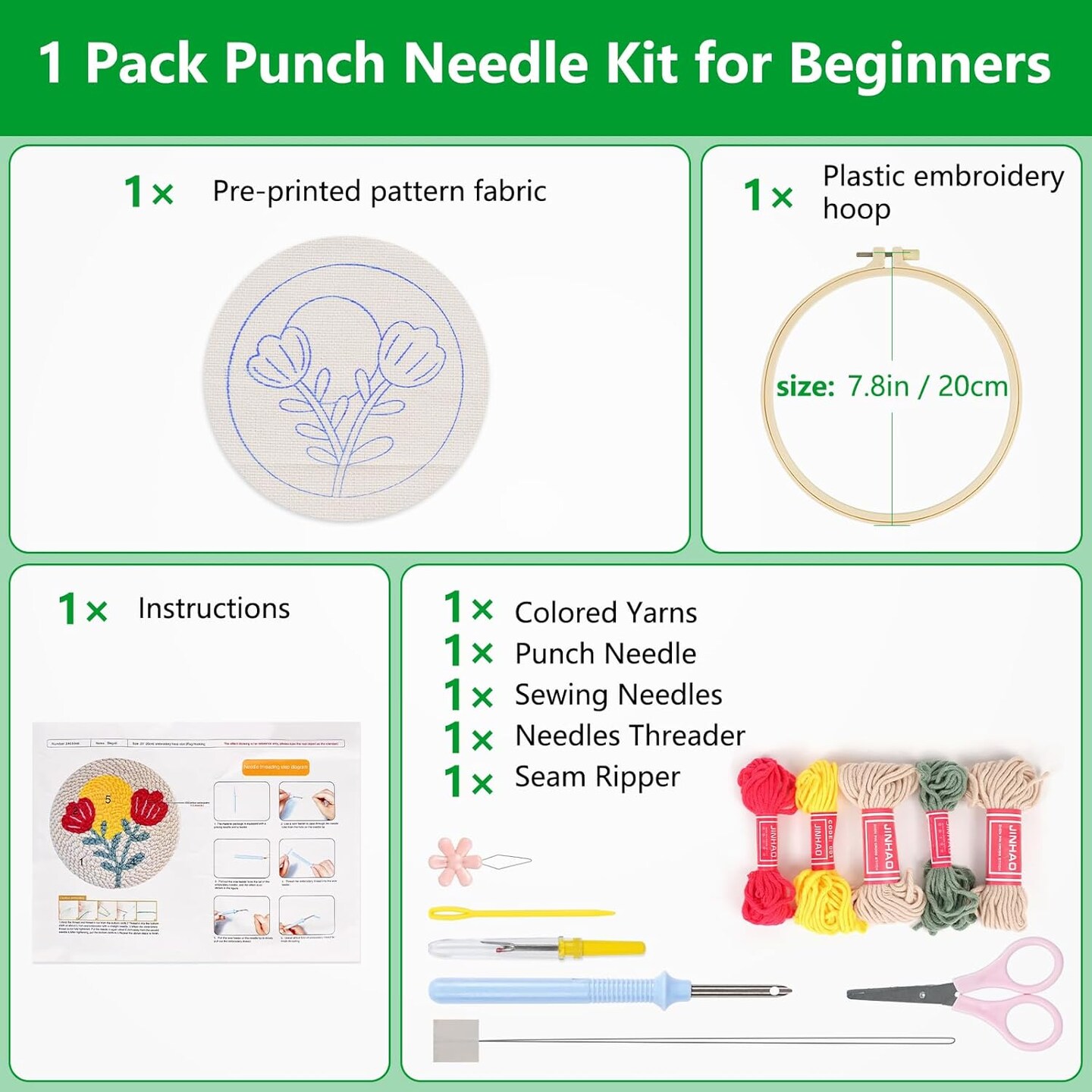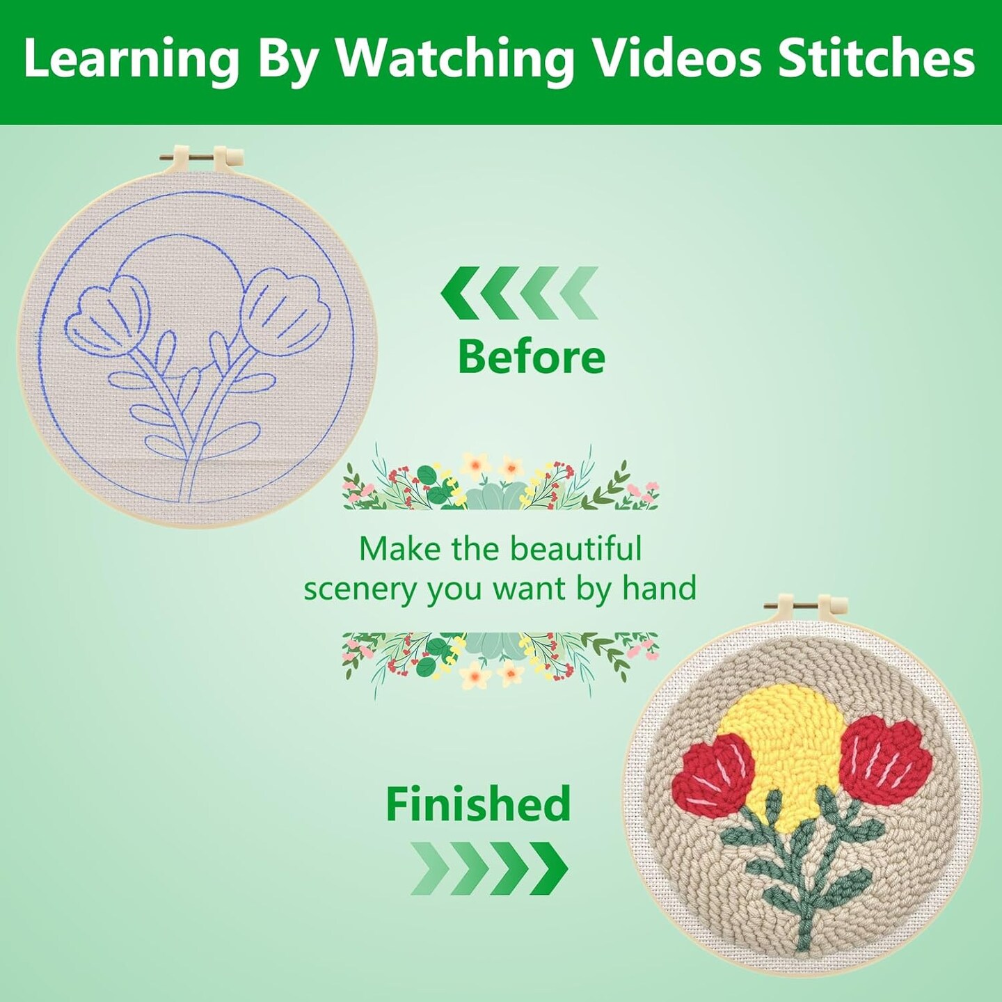 Punch Needle Kit for Beginners – DIY Flowers Love Embroidery Set with Fabric, Hoop, Yarn & Threader, Step-by-Step Instructions & Video Tutorial, Easy Craft Kit for Adults & Kids