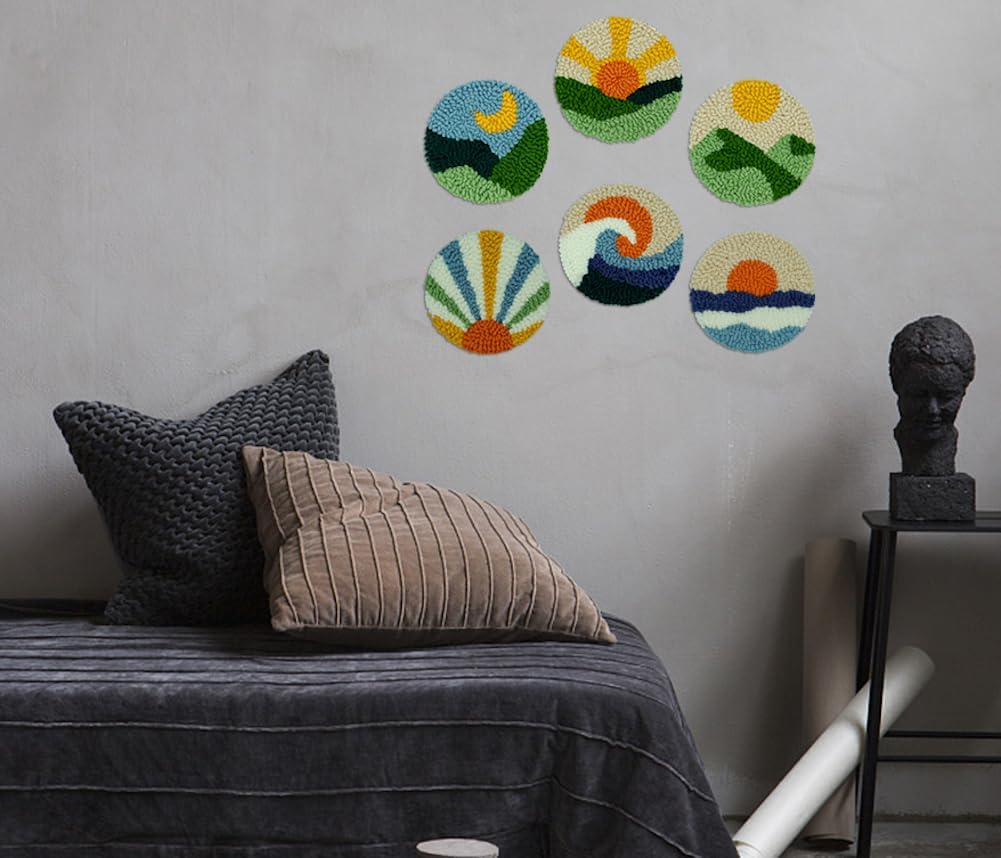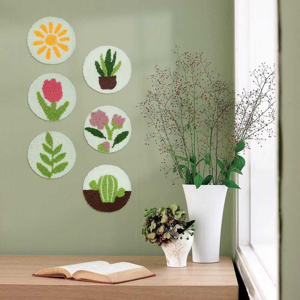 Punch Needle Kit for Beginners – Easy DIY Punch Needle Embroidery Set with Hoop, Yarn, Threader & Pre-Printed Fabric, Fun Arts and Crafts Kit for Adults & Kids, DIY Coaster & Rug Tufting Craft