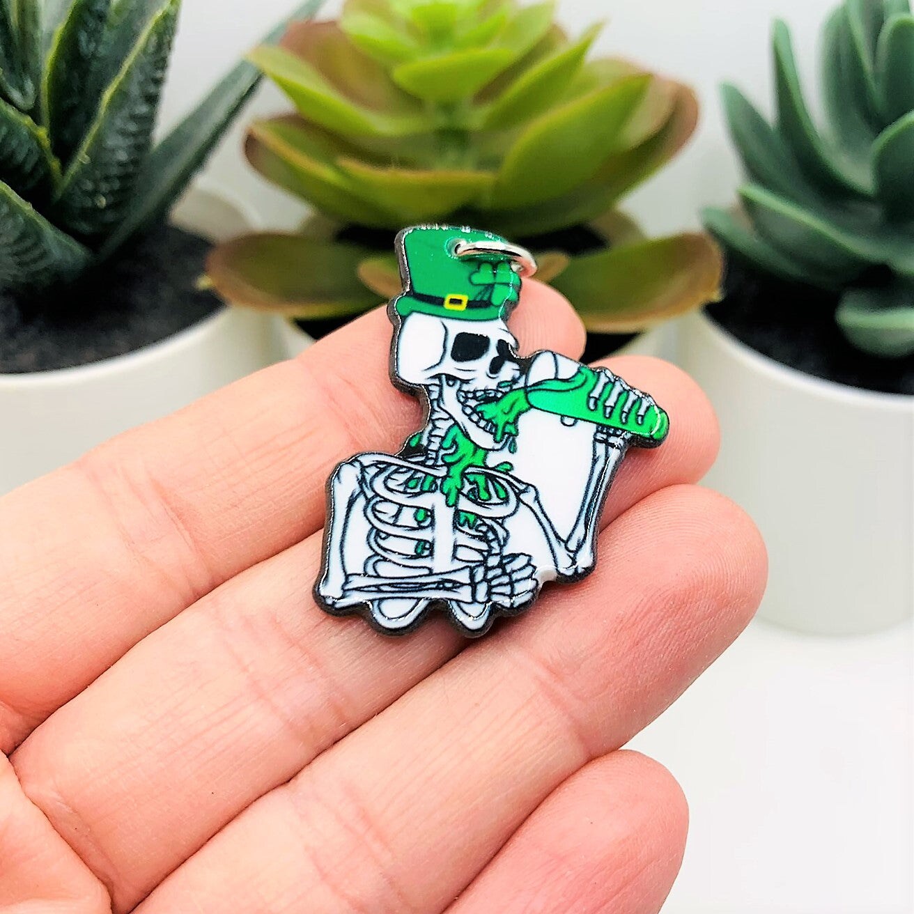 Punk St. Patrick's Day Drinking Skeleton Charms, 37.5x29mm