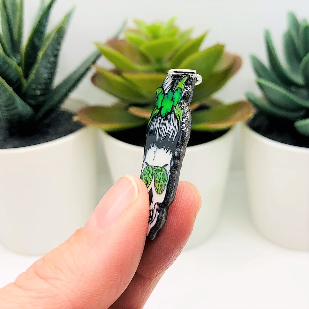 Punk St. Patrick's Day Skull Clover Charms, 38.5x20mm