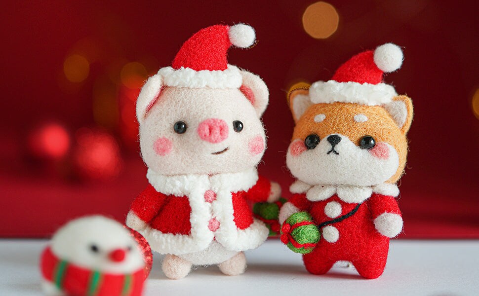 Puppy in Christmas Costume Needle Felting Kit. Wizardi DIY Wool Craft Kit F07N8-W151