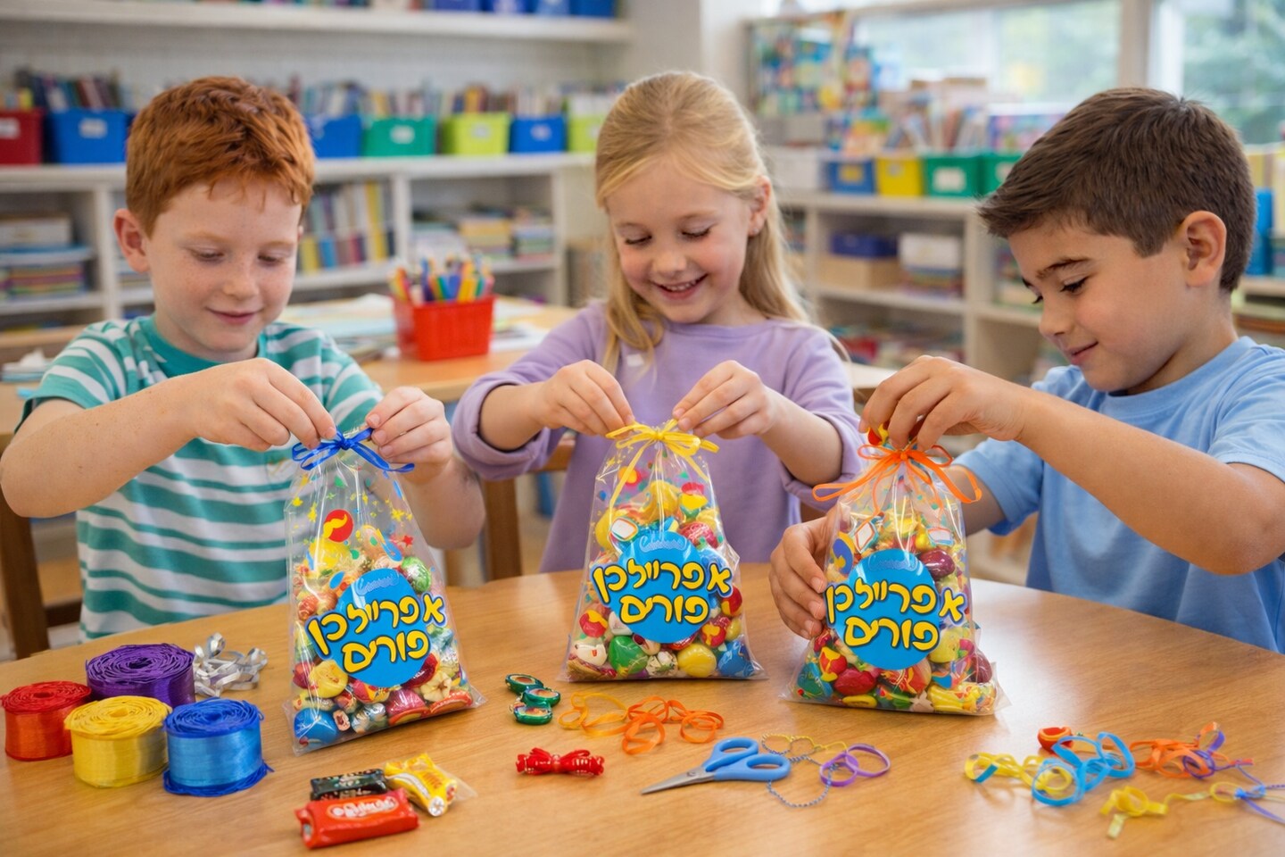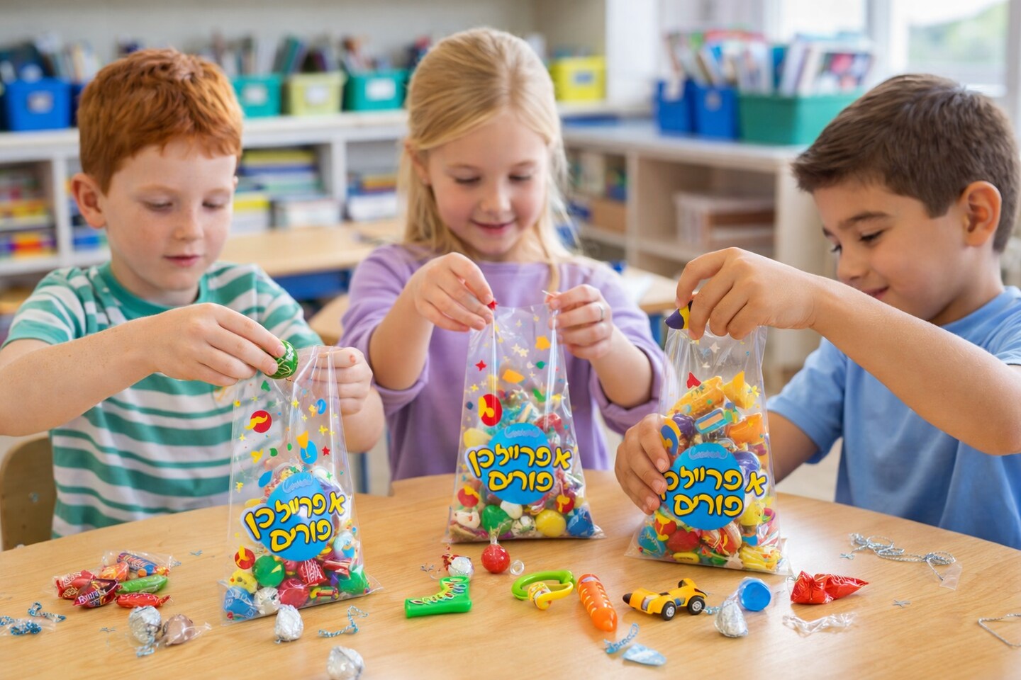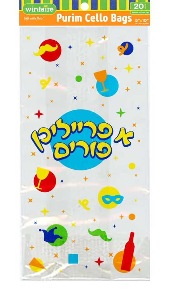 Purim Cello Treat Bags 5" x 10" – Clear Gift Bags with Festive Purim Design, 20 Pack – Mishloach Manot Candy & Party Favor Bags