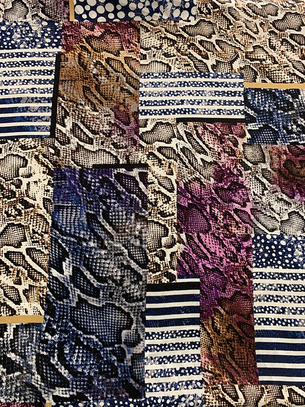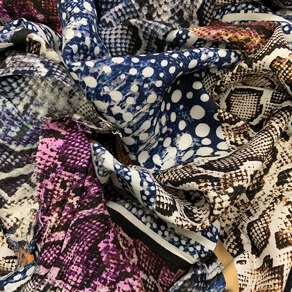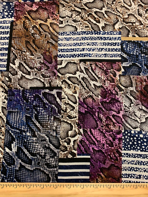 Purple and Blue Multi Animal Patchwork Print Rayon Challis Fabric By the Yard