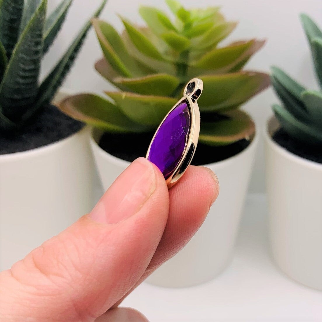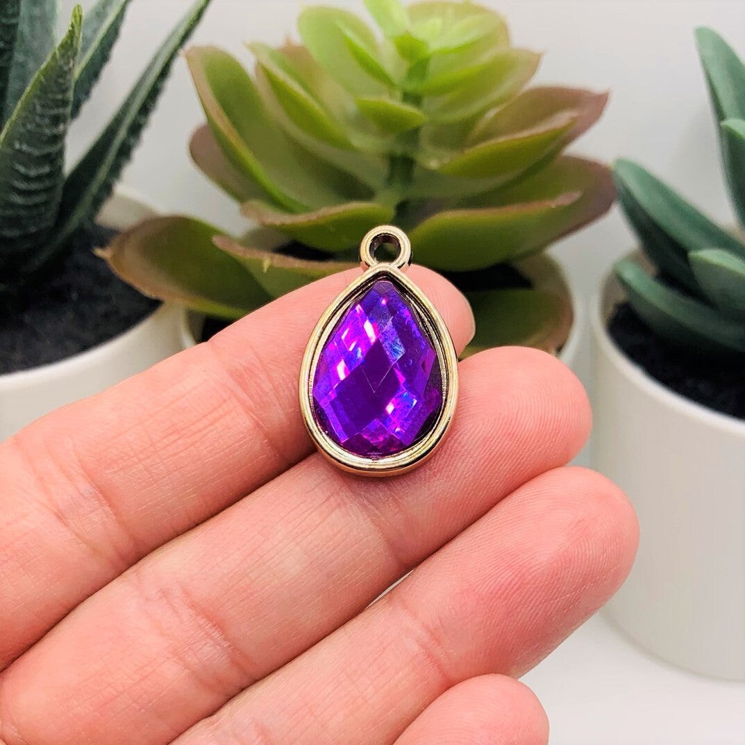 Purple and Gold Acrylic Teardrop Charms, 25x16mm