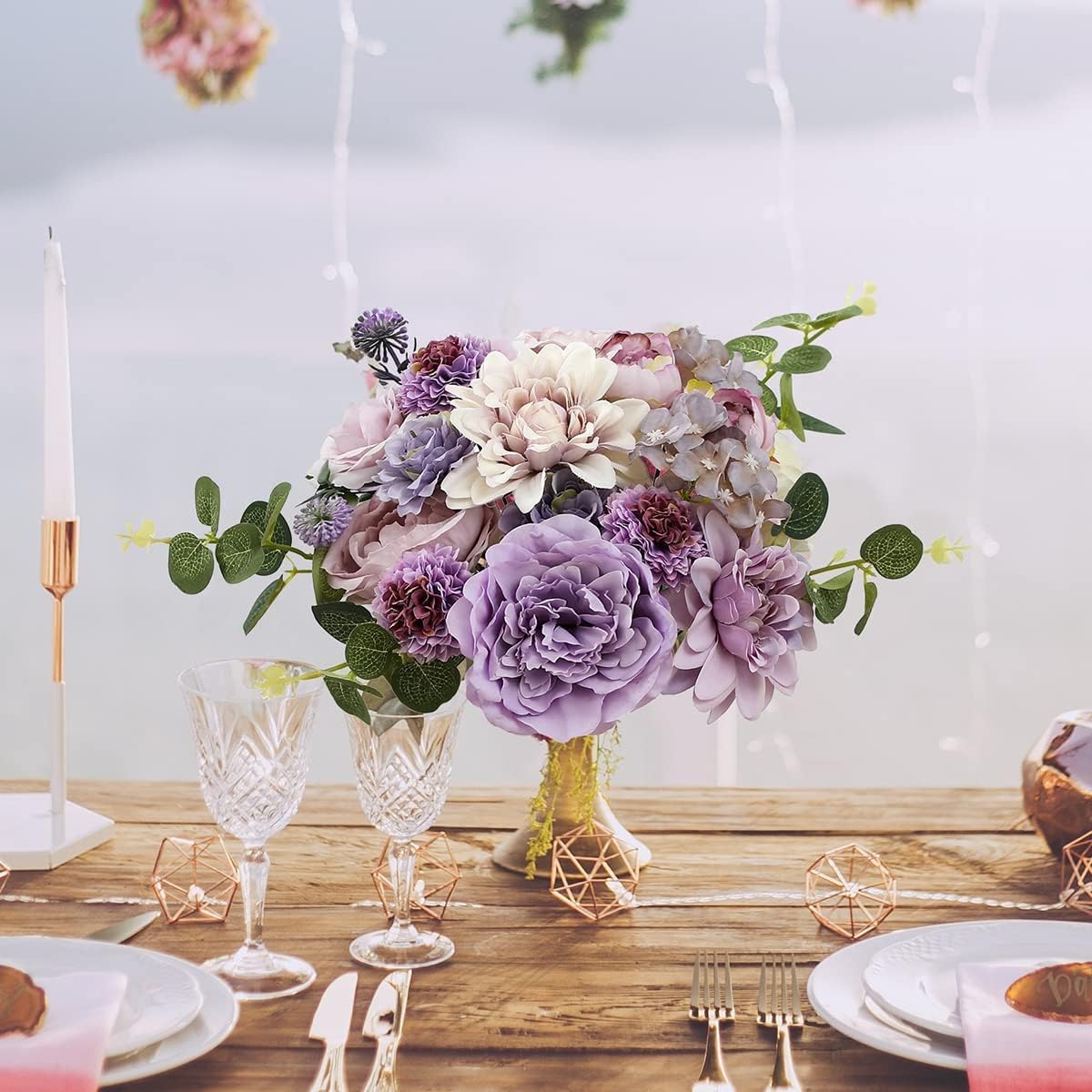 Purple Artificial Flowers Combo Cake Flowers Decorations Fake Peony Silk Roses