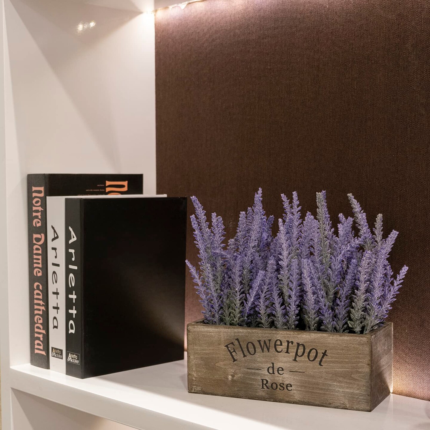 Purple Artificial Lavender Flowers with Decorative Tray Wooden Box 9 Inches - Lifelike Faux Lavender Plants for Home and Office Decor, Fake Lavender Rustic Farmhouse Style