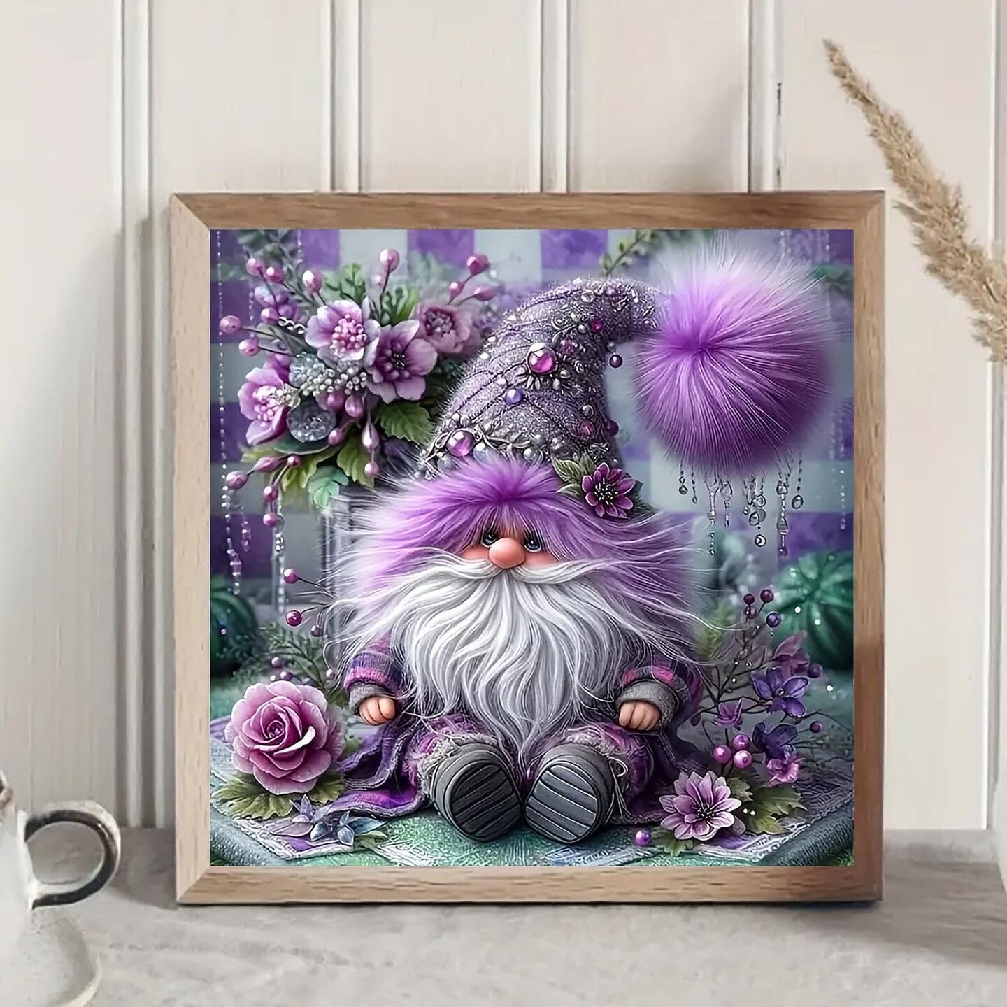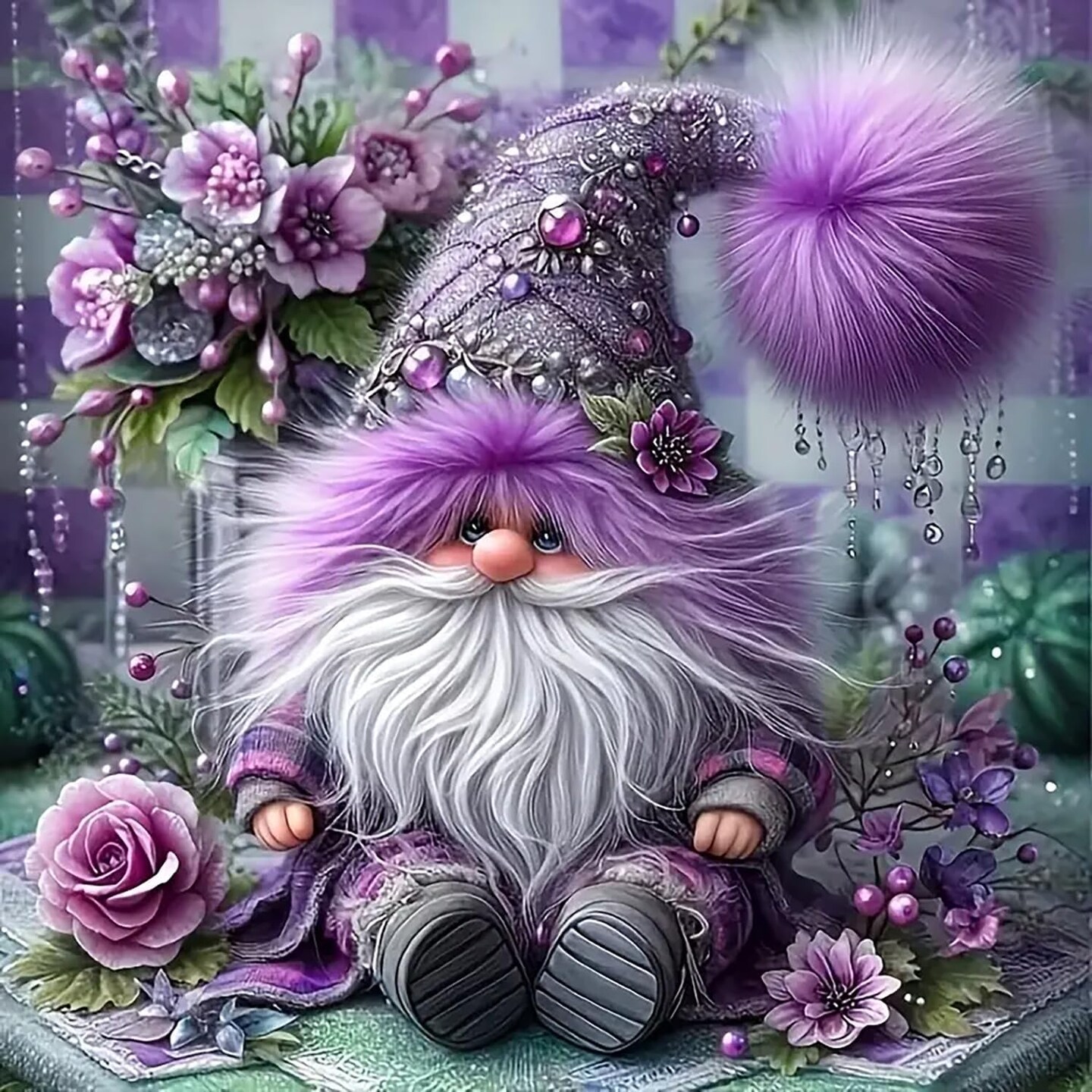 Purple Gnome Flower Diamond Art Kits for Adults, 5D Diamond Painting Kits for Adults Beginners, DIY Full Round Drill Diamond Dot Painting Gem Art Kits for Adult, Home Wall Decor