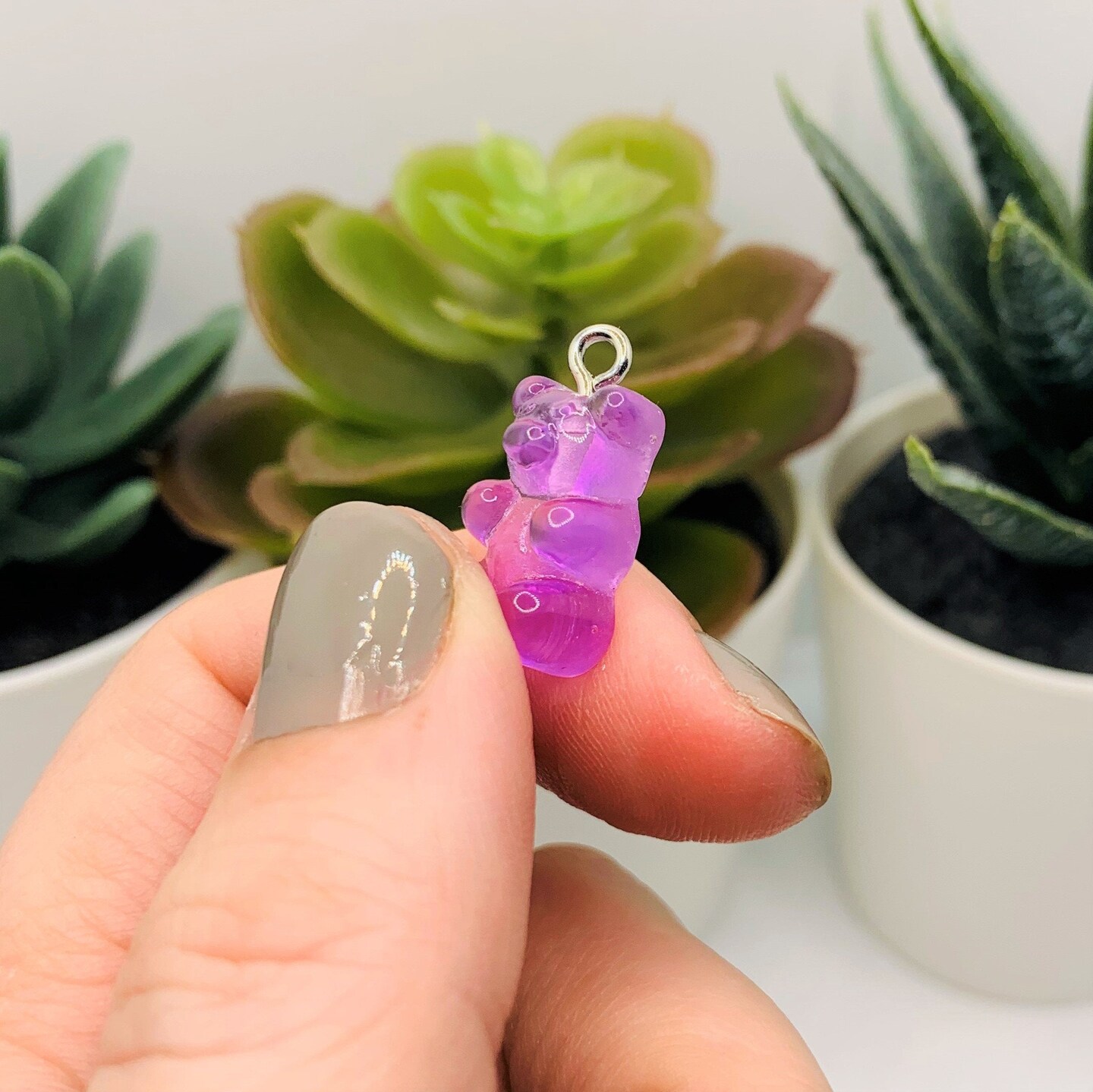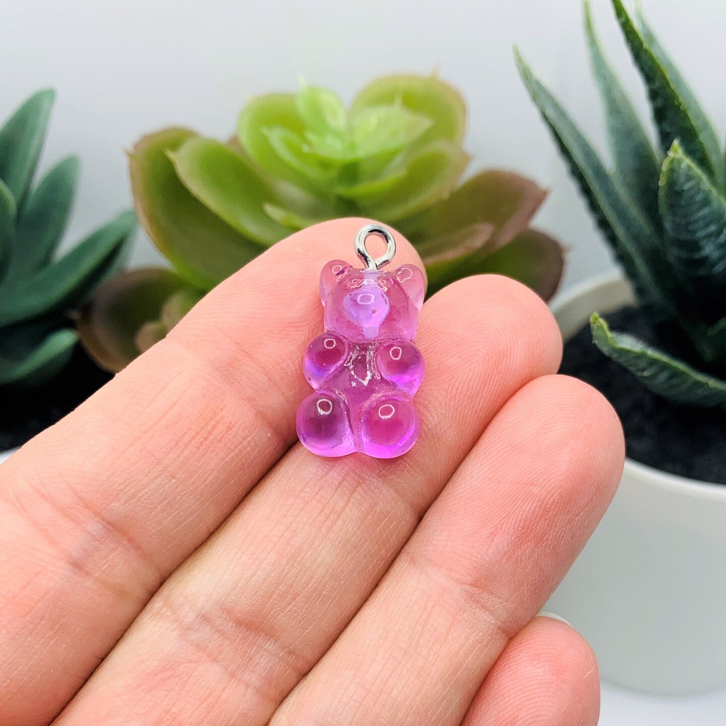 Purple Gummy Bear Resin 3D Charms with eye screw, 20x12mm