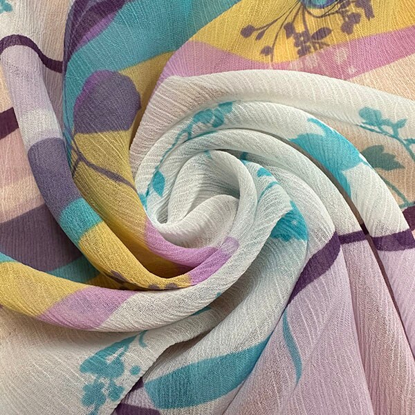 Purple Multi Floral Crinkled Poly Chiffon Fabric By the Yard