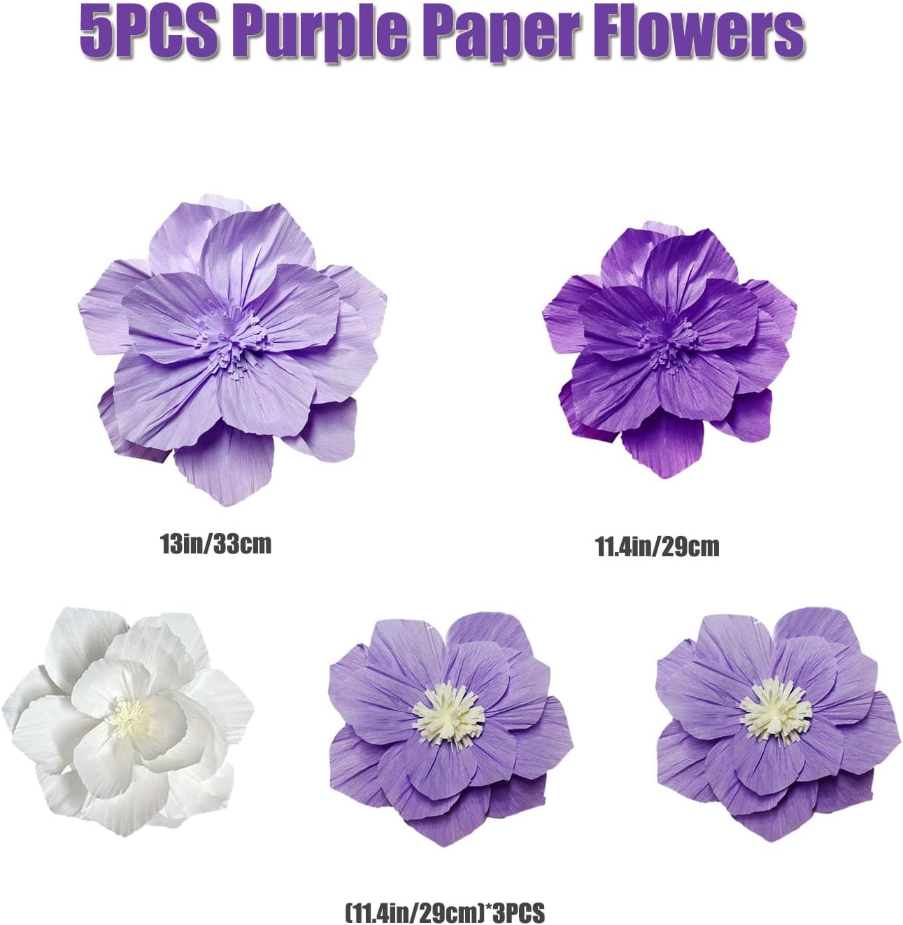 Purple Paper Flowers 5PCS 3D Flower Wall Decor