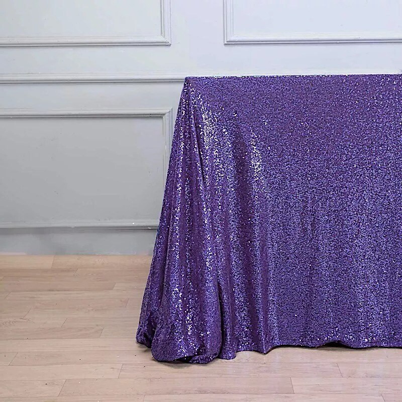 PURPLE Sequined 90x156" RECTANGLE TABLECLOTH Designer Wedding Party Catering