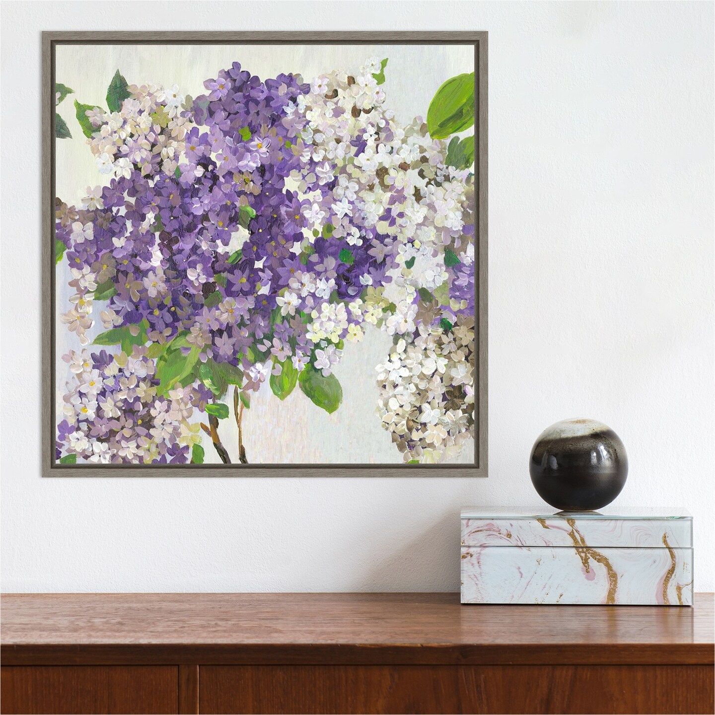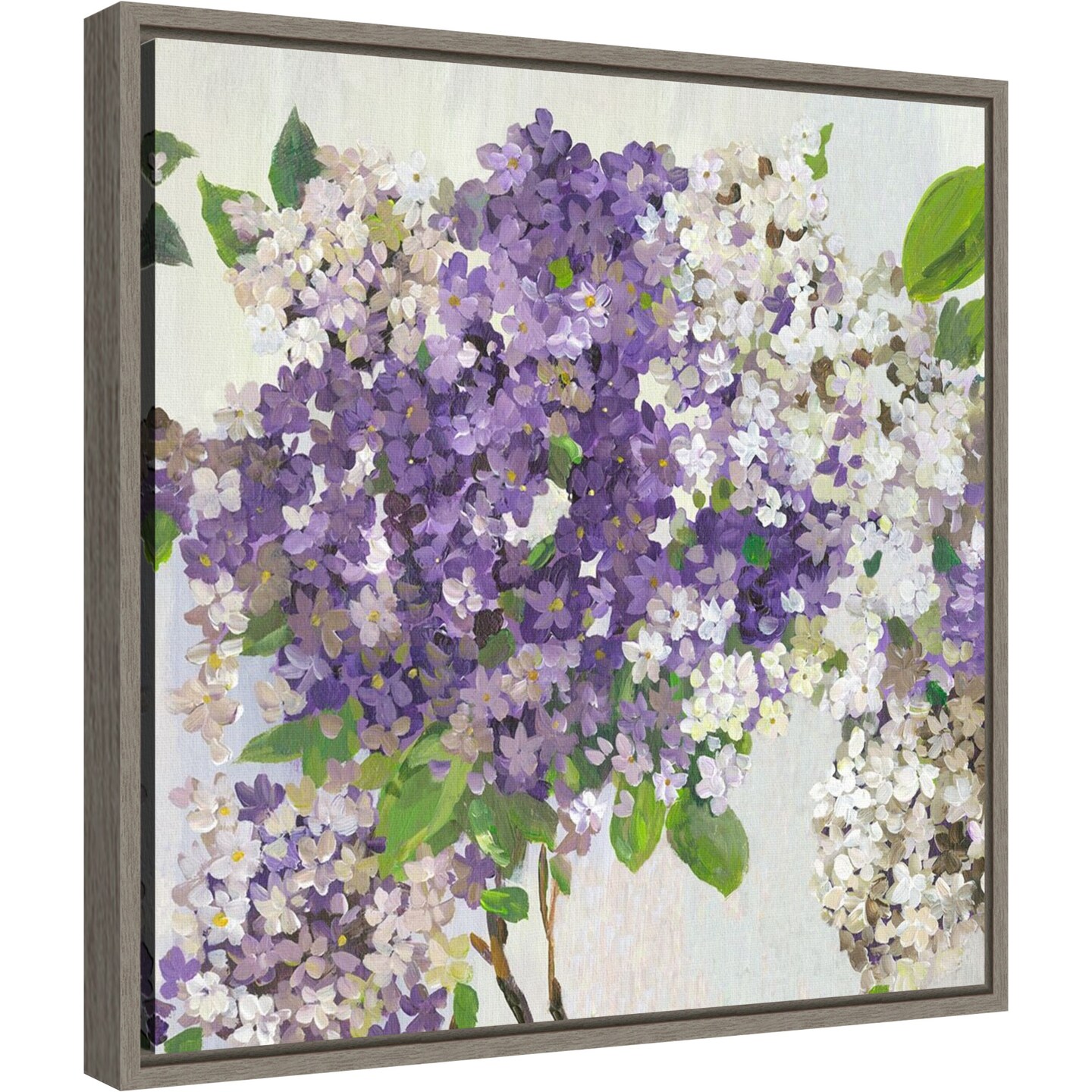 Purple Summer Hydrangea II by Asia Jensen 16-in. W x 16-in. H. Canvas Wall Art Print Framed in Grey