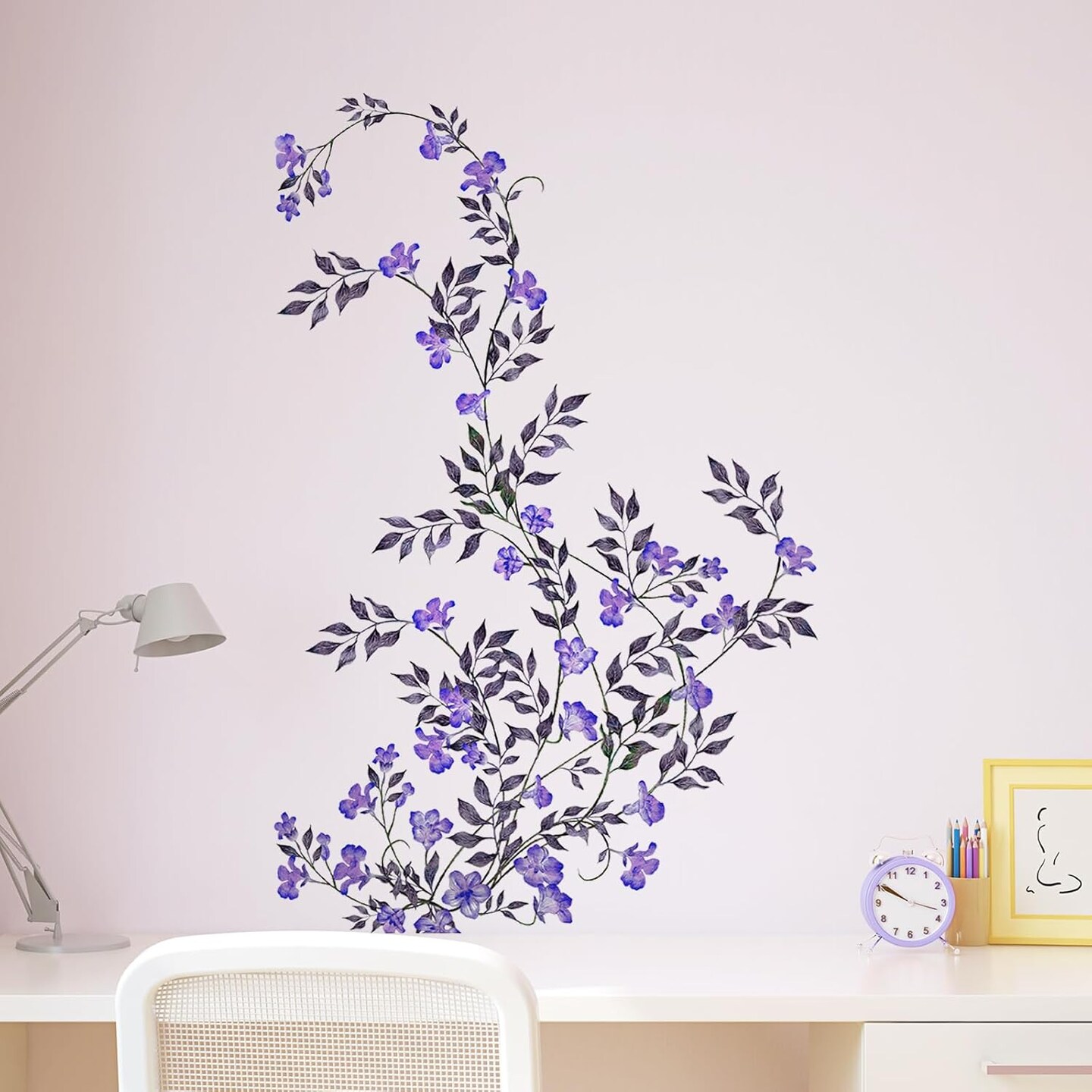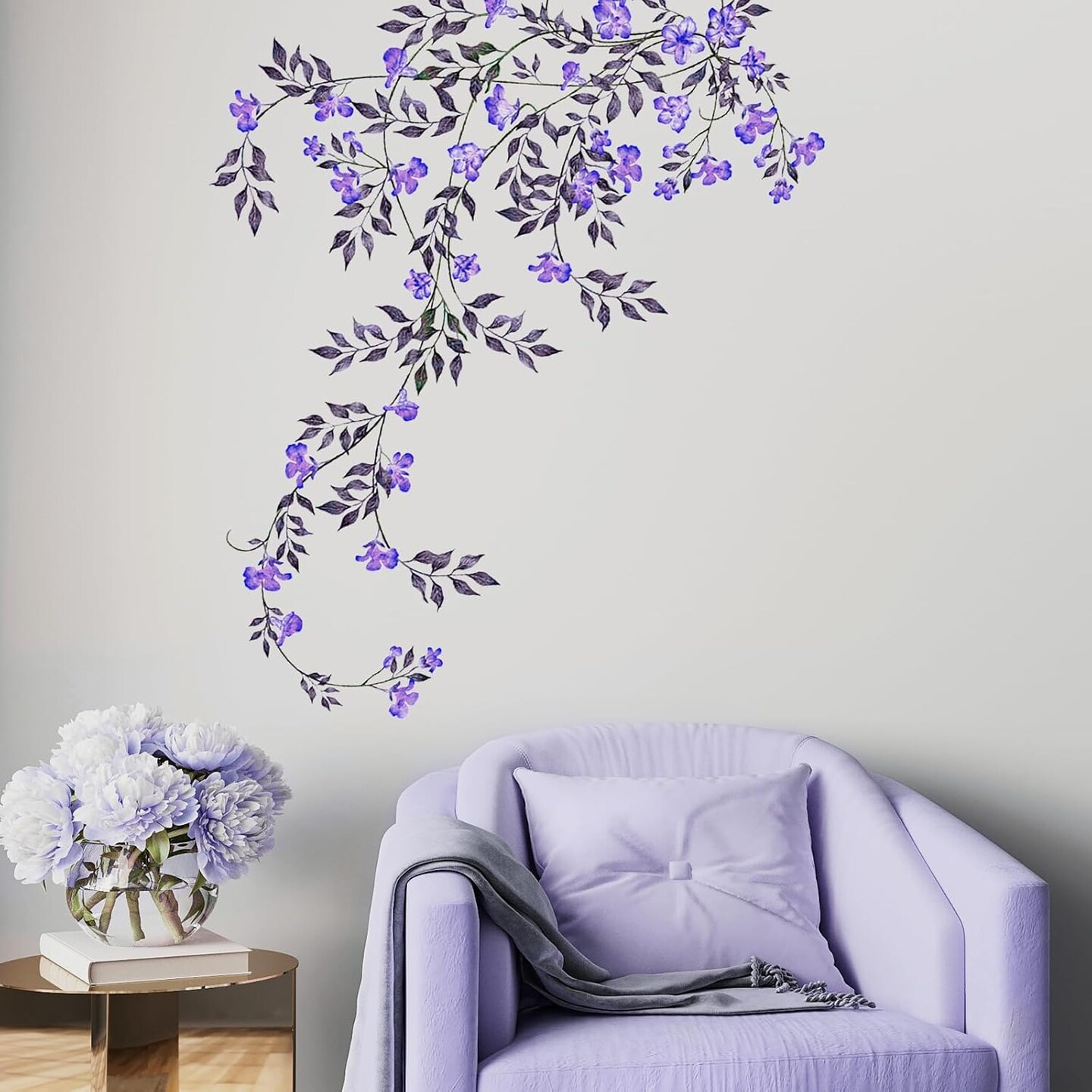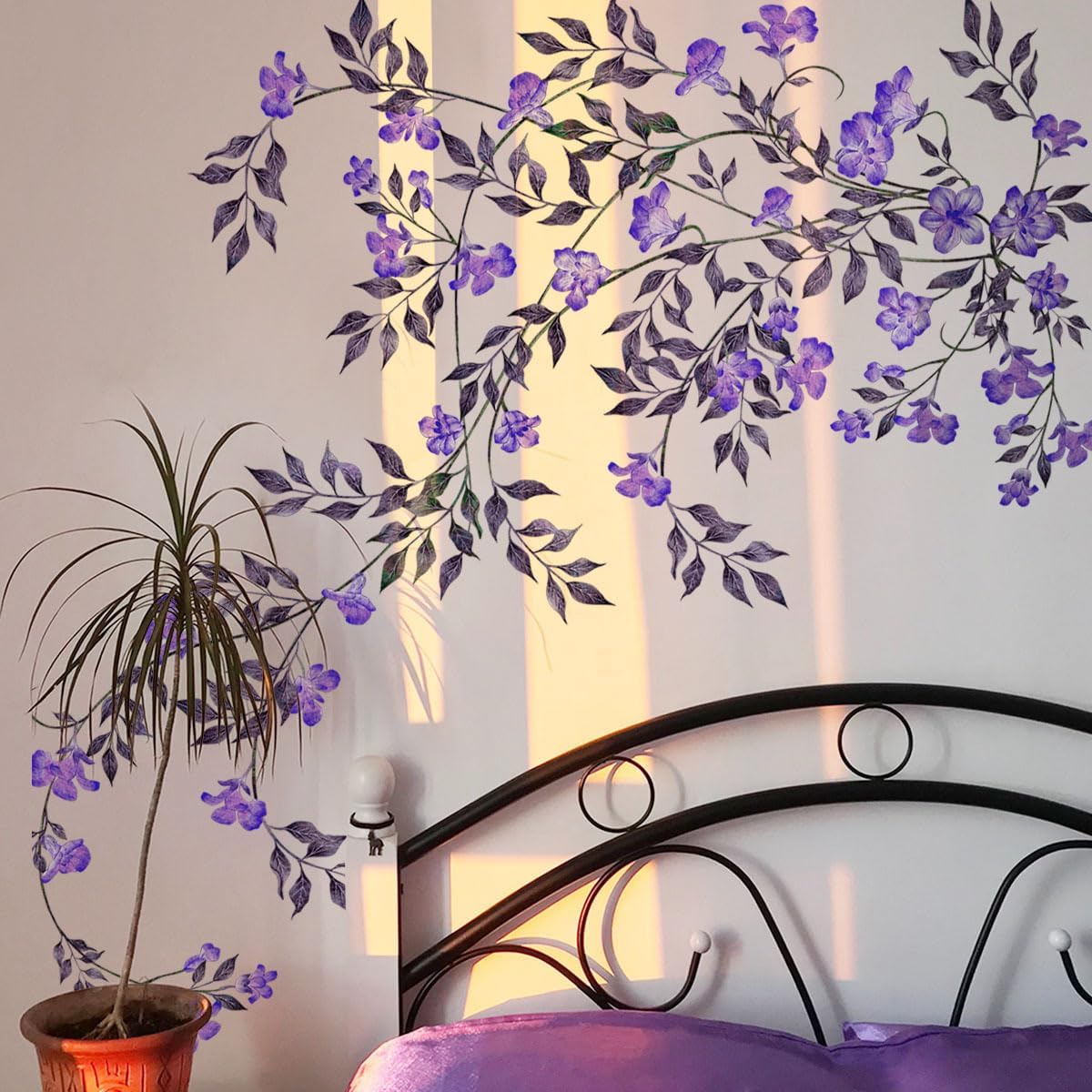 Purple Vine Flowers Wall Decal Hanging Vine Branch Floral Wall Stickers Self-Adhesive Wall Art