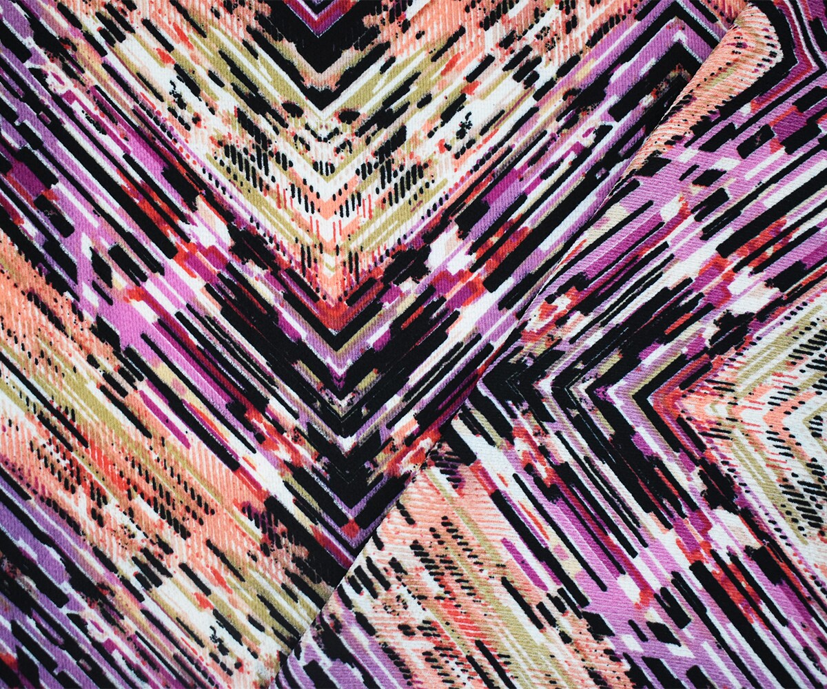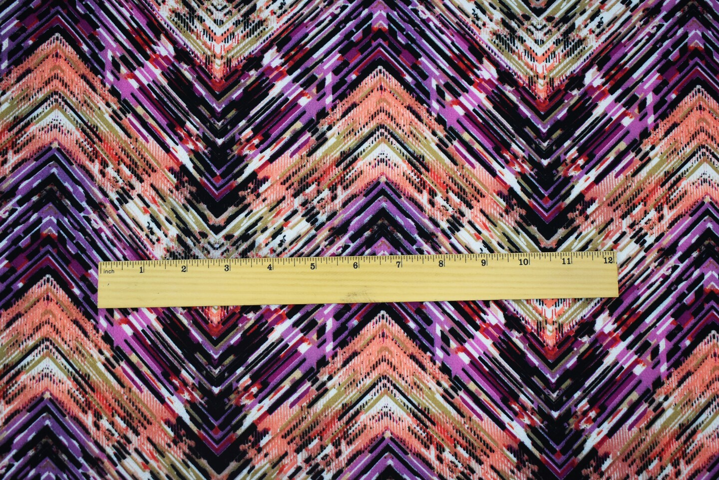 Purple-Coral-Multi Poly Abstract Tribal Chevron Printed Crepe Woven Fabric By the Yard