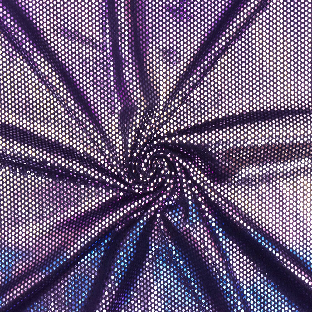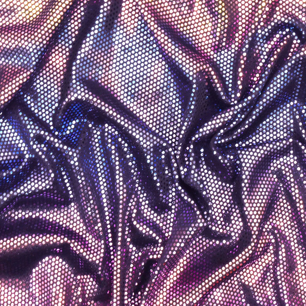 Purple-Multi Hologram Micro Dot Foil Printed Stretch Activewear Fabric By the Yard