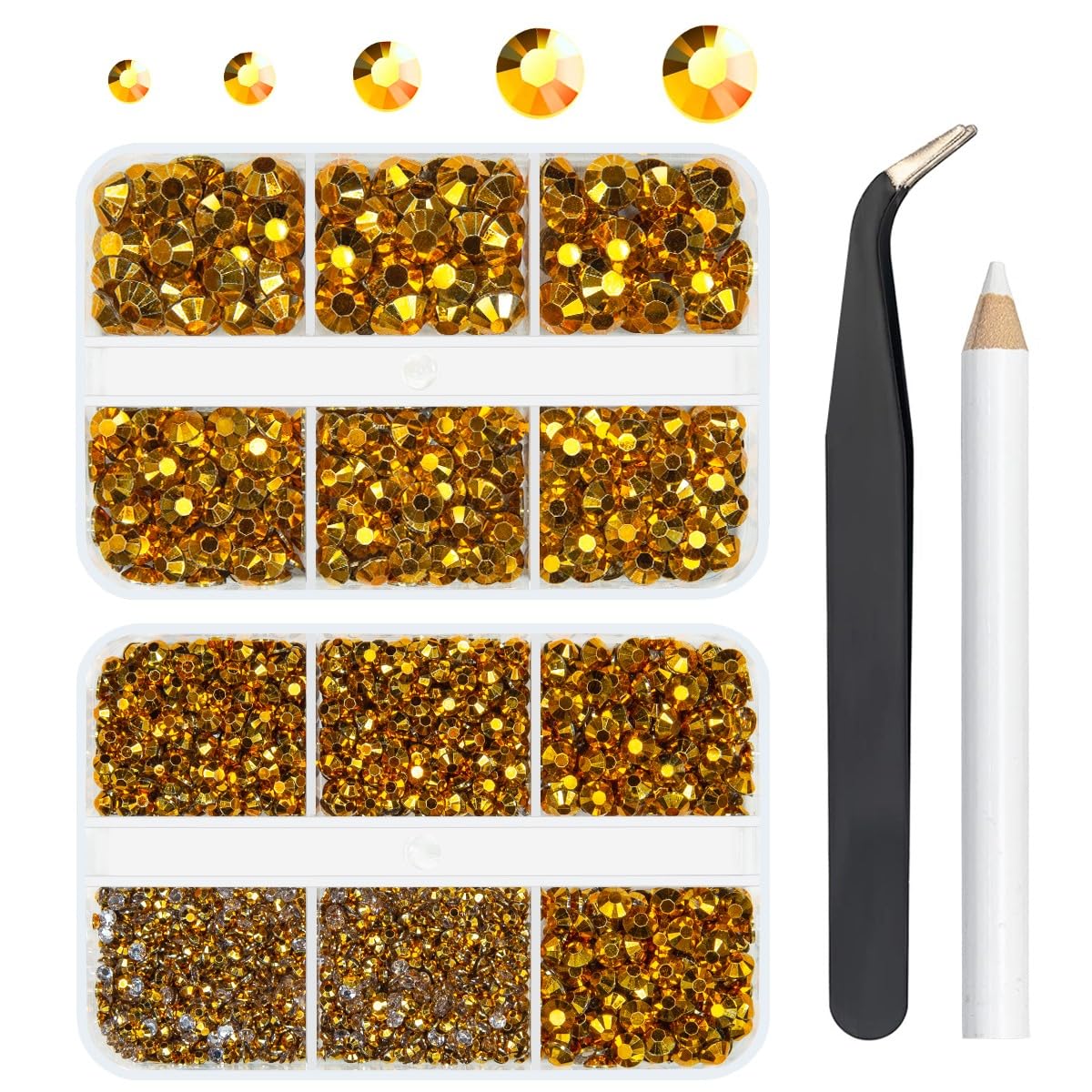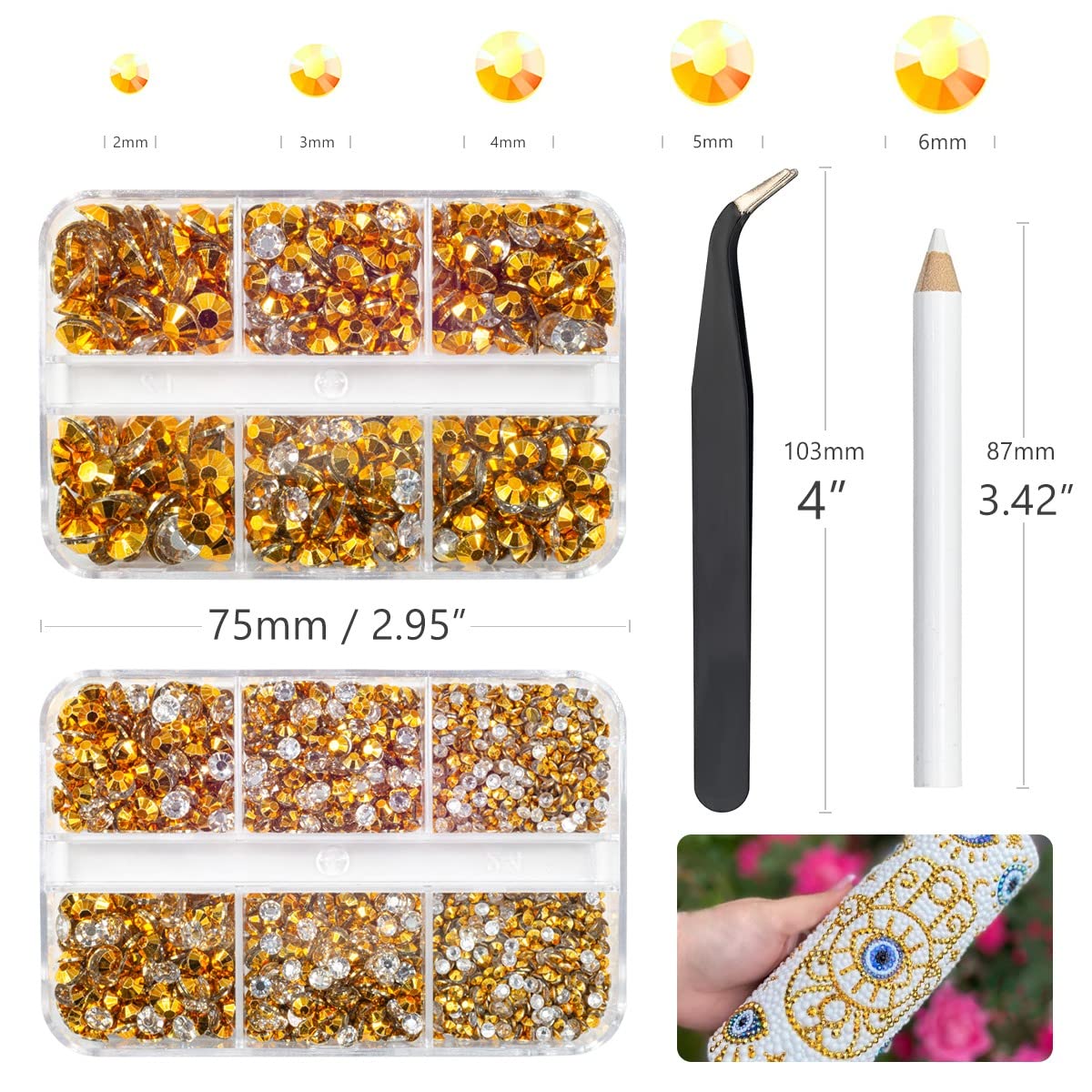 qiipii 3060PCS Bright Gold Resin Flatback Rhinestones for Tumblers Crafts Clear Golden Flatback Jelly Rhinestone 2mm 3mm 4mm 5mm 6mm Non-Hotfix Golden Gems Stones for Tumblers Mugs Bottles DIY Crafts