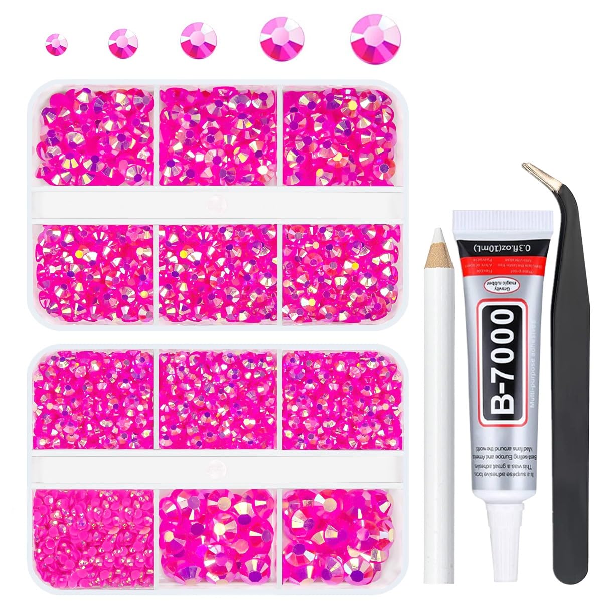qiipii Hot Pink AB Resin Rhinestones for Bedazzling Crafting 2mm 3mm 4mm 5mm 6mm Rose Pink Flatback Jelly Stones Diamonds Gems for Face Eyes Makeup Tumblers Mugs Bottles Crafts Clothes Shoes Phones