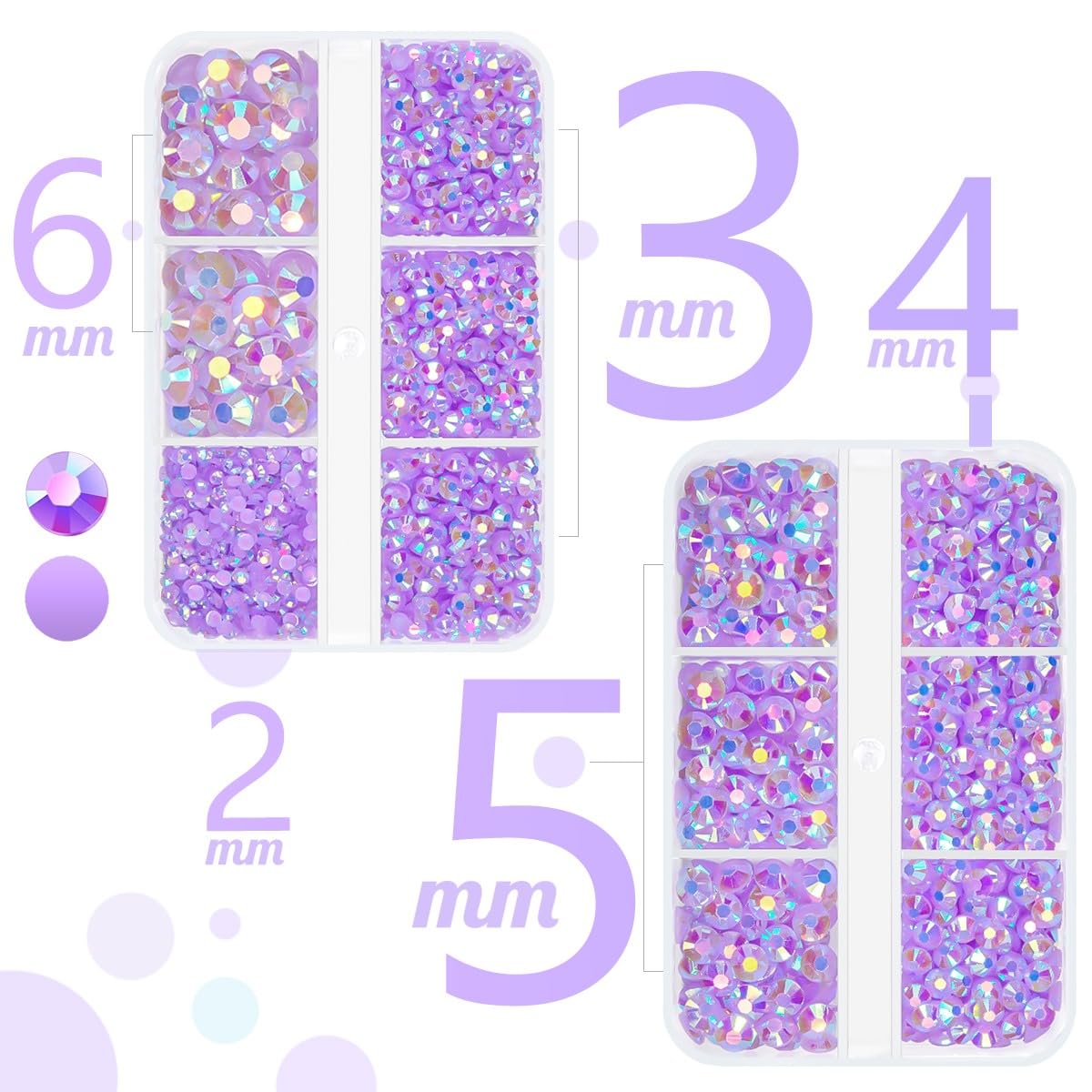 qiipii Light Purple AB Resin Rhinestones for Crafting Violet Flatback Jelly Stones 2mm 3mm 4mm 5mm 6mm Gems Diamonds for Nails Face Eyes Makeup Tumblers Mugs Bottles DIY Crafts Clothes Shoes Phones