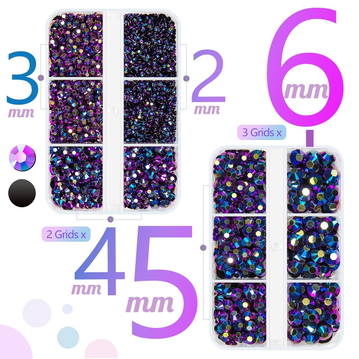 qiipii Purple Rose AB Resin Flatback Rhinestones 2mm 3mm 4mm 5mm 6mm Flatback Black AB Jelly Stones Gems Crystals Diamonds for Face Eyes Makeup Tumblers Bottles DIY Crafts Clothes Shoes Phones Bookes