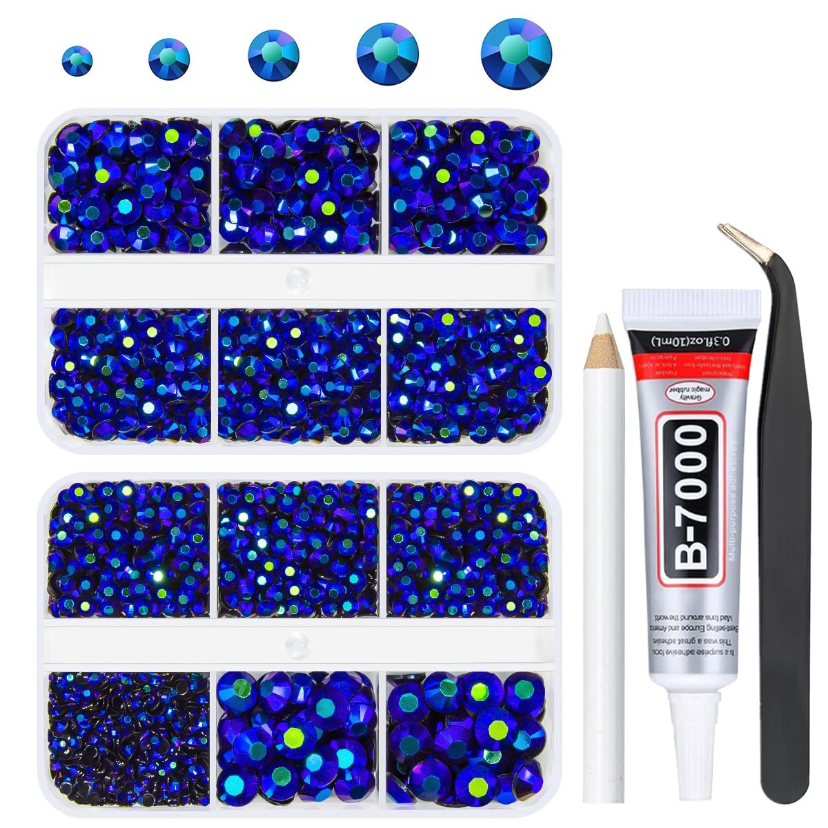 qiipii Sapphire Blue AB Resin Rhinestones w B7000 Glue for Bedazzling Crafting 2mm-6mm Black AB Flatback Jelly Stones Diamonds Gems for Face Eyes Makeup Tumblers Bottles Crafts Clothes Shoes Phones
