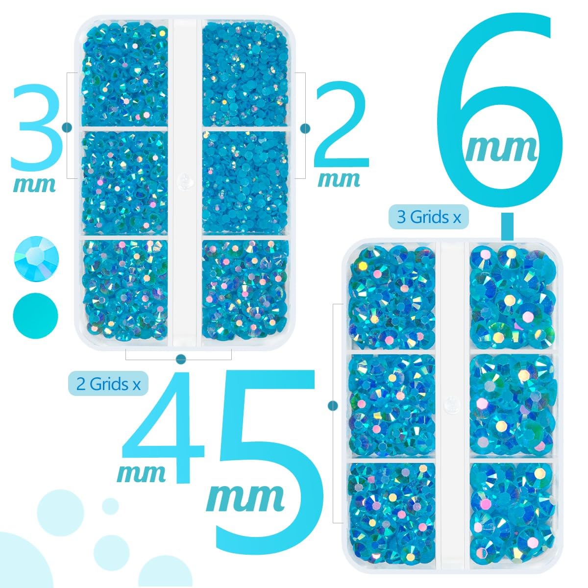 qiipii Teal Blue AB Resin Rhinestones for Crafting 2mm-6mm Turquoise Blue Flatback Jelly Stones Non-Hotfix Diamonds Gems Charms for Nails Face Eyes Makeup Tumblers Bottles Crafts Clothes Shoes Phones