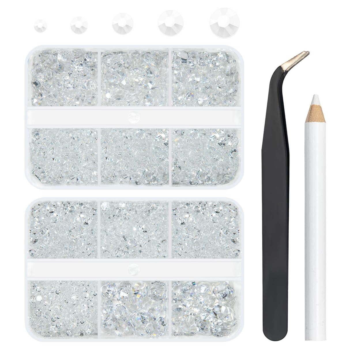 qiipii Transparent Clear Resin Rhinestones for Crafting Clear White Flatback Jelly Stones 2mm 3mm 4mm 5mm 6mm Gems Diamonds for Nails Face Eyes Makeup Tumblers Bottles DIY Crafts Clothes Shoes Phones
