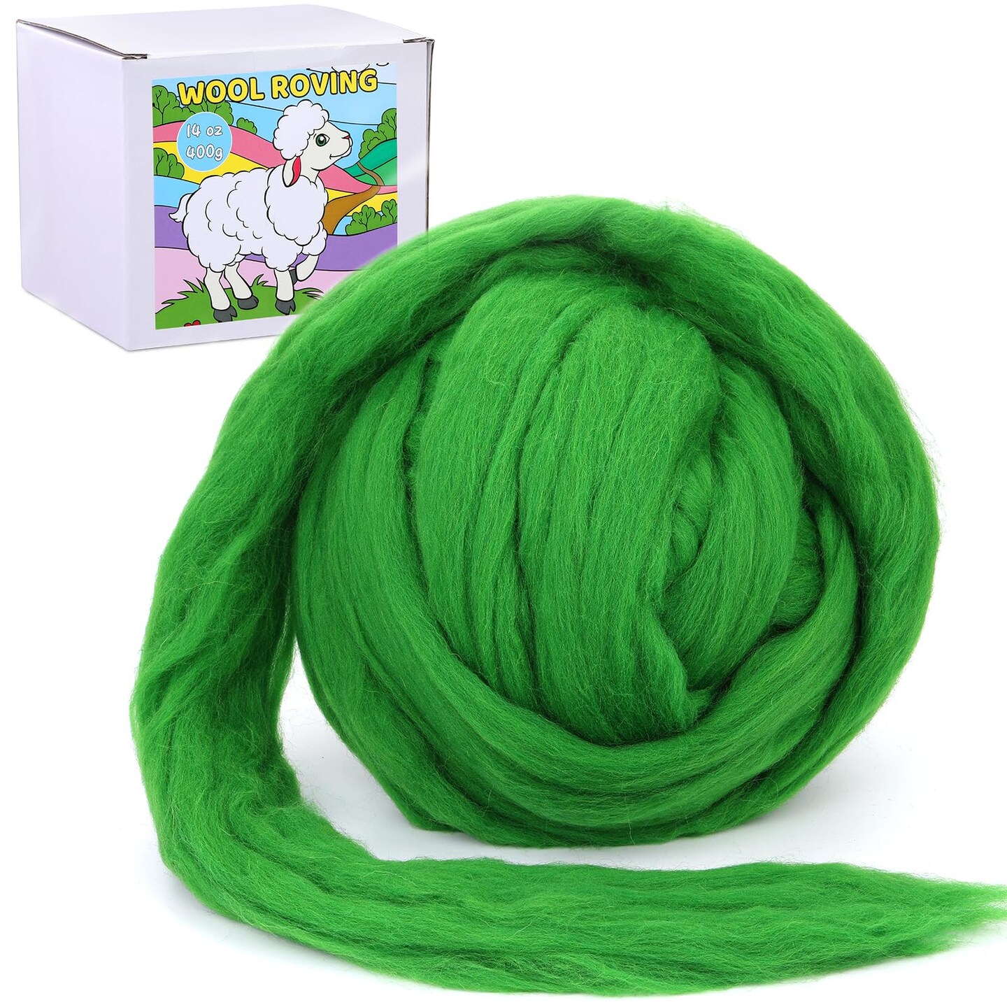 QMNNMA Wool Roving, Green Natural Wool Roving for Spinning, Soft Chunky Yarn for Wool Felting, Felting Pad, Felting Supply, Wool Yarn Bulk, Carded Stuffing