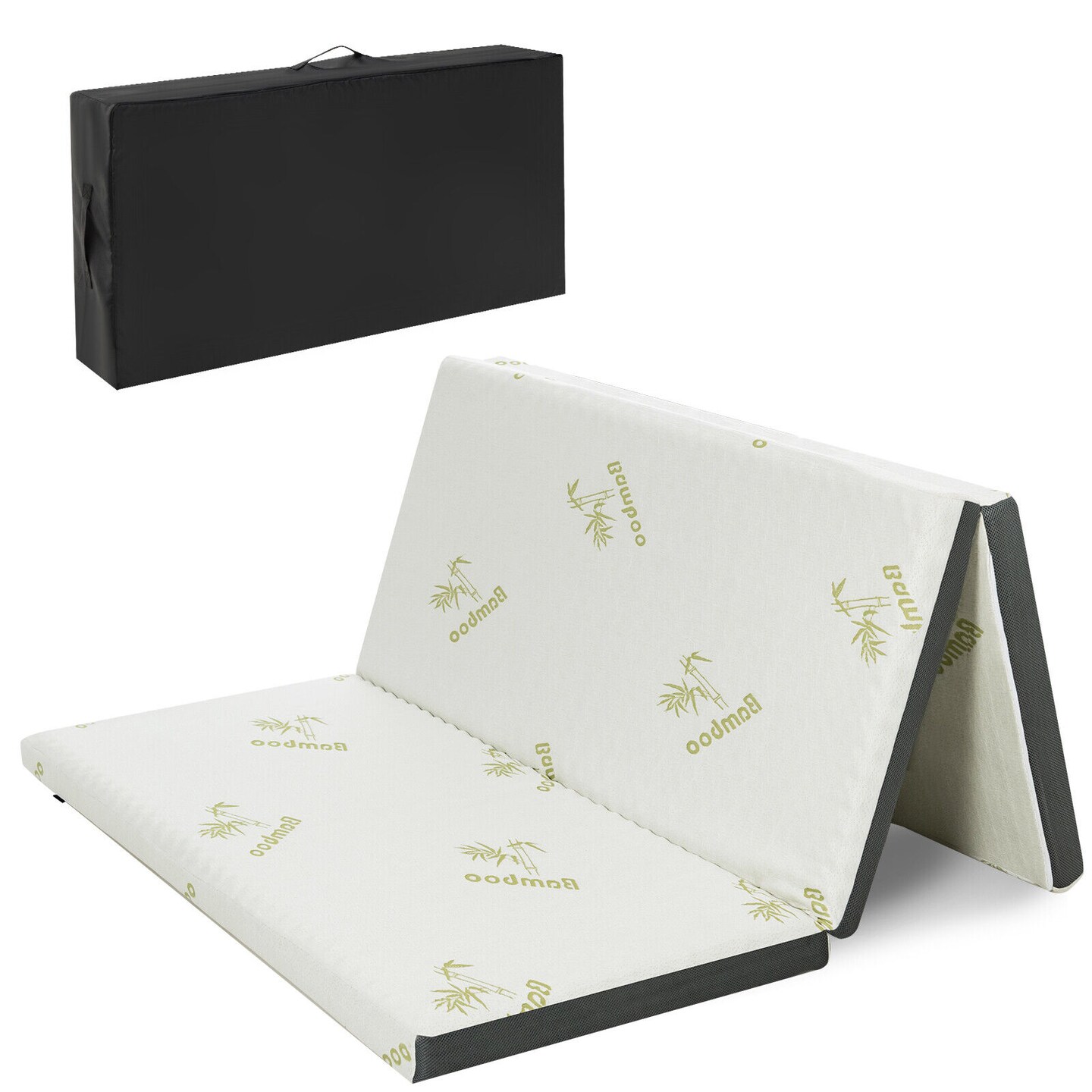 Queen 3 Inch Tri-fold Memory Foam Floor Mattress Topper Portable with Carrying Bag